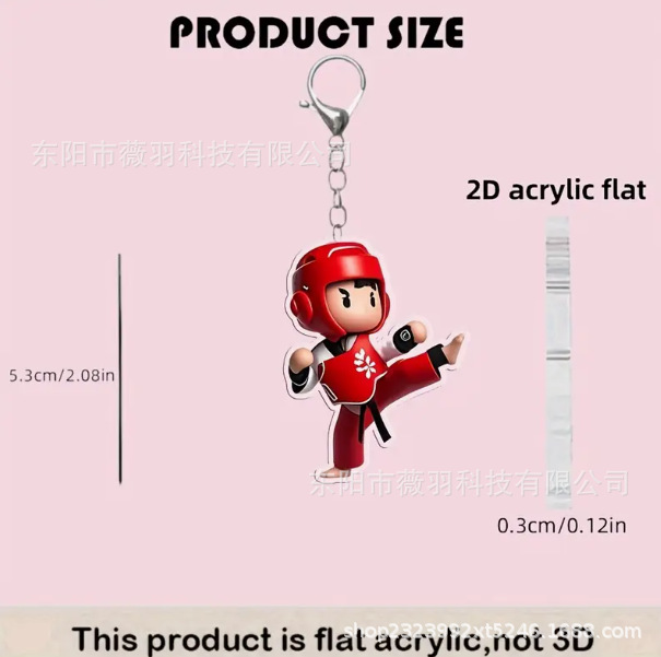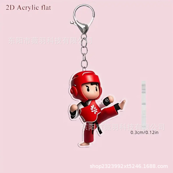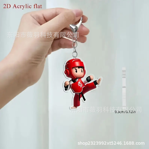 국경 간 새로운 2D 아크릴 평면 귀여운 빨간색 태권도 악마 자동차 키 펜던트 배낭 펜던트스토어 가기