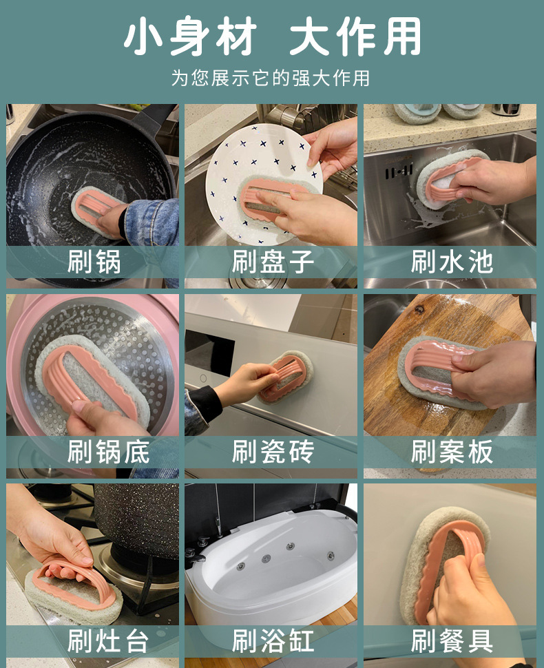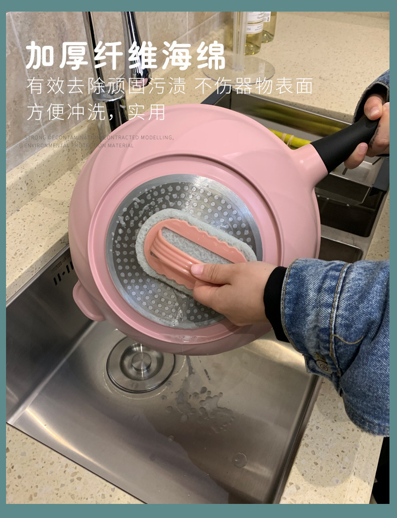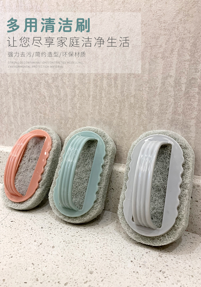 손잡이가있는 다기능 가정용 청소 브러시 ​​백 클리너 타일 청소 브러시 ​​주방 스토브 싱크 청소 스폰지 브러시스토어 가기