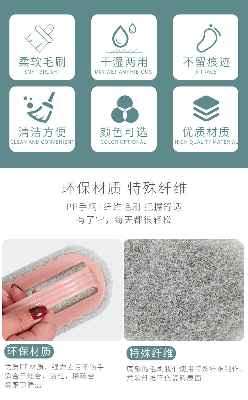 손잡이가있는 다기능 가정용 청소 브러시 ​​백 클리너 타일 청소 브러시 ​​주방 스토브 싱크 청소 스폰지 브러시