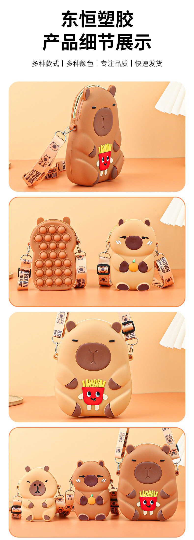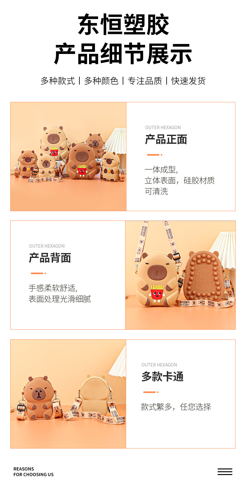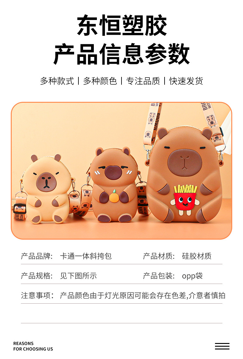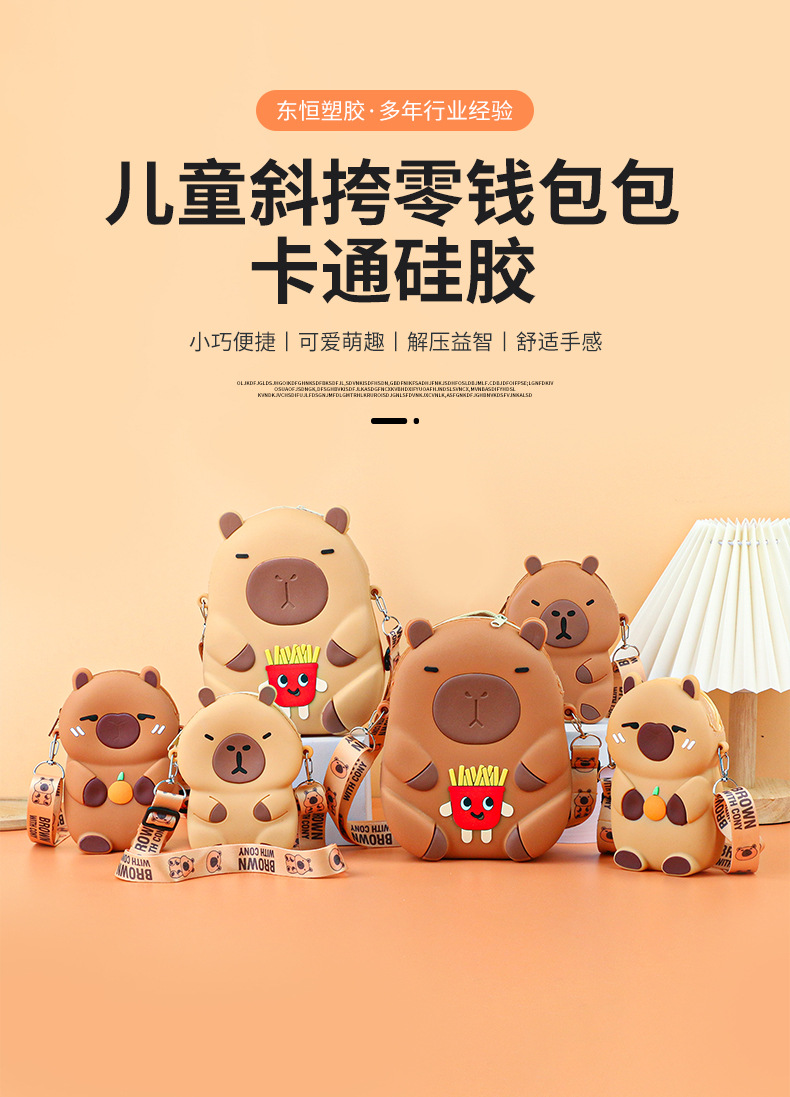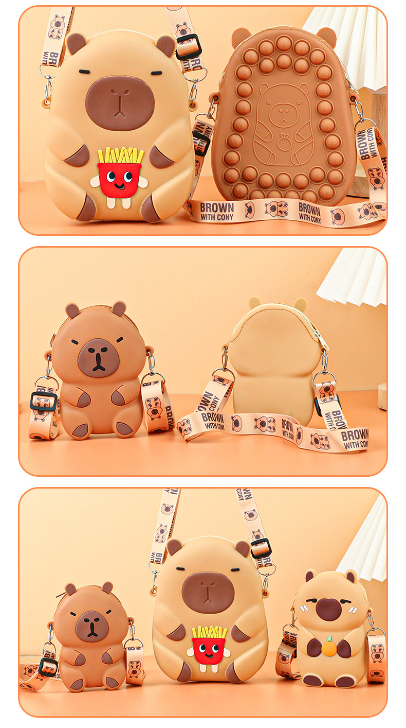 Kapibala 실리콘 어린이 크로스 바디 가방 어린 소녀 작은 가방 지갑 귀여운 Capybara 학생 휴대 전화 가방스토어 가기