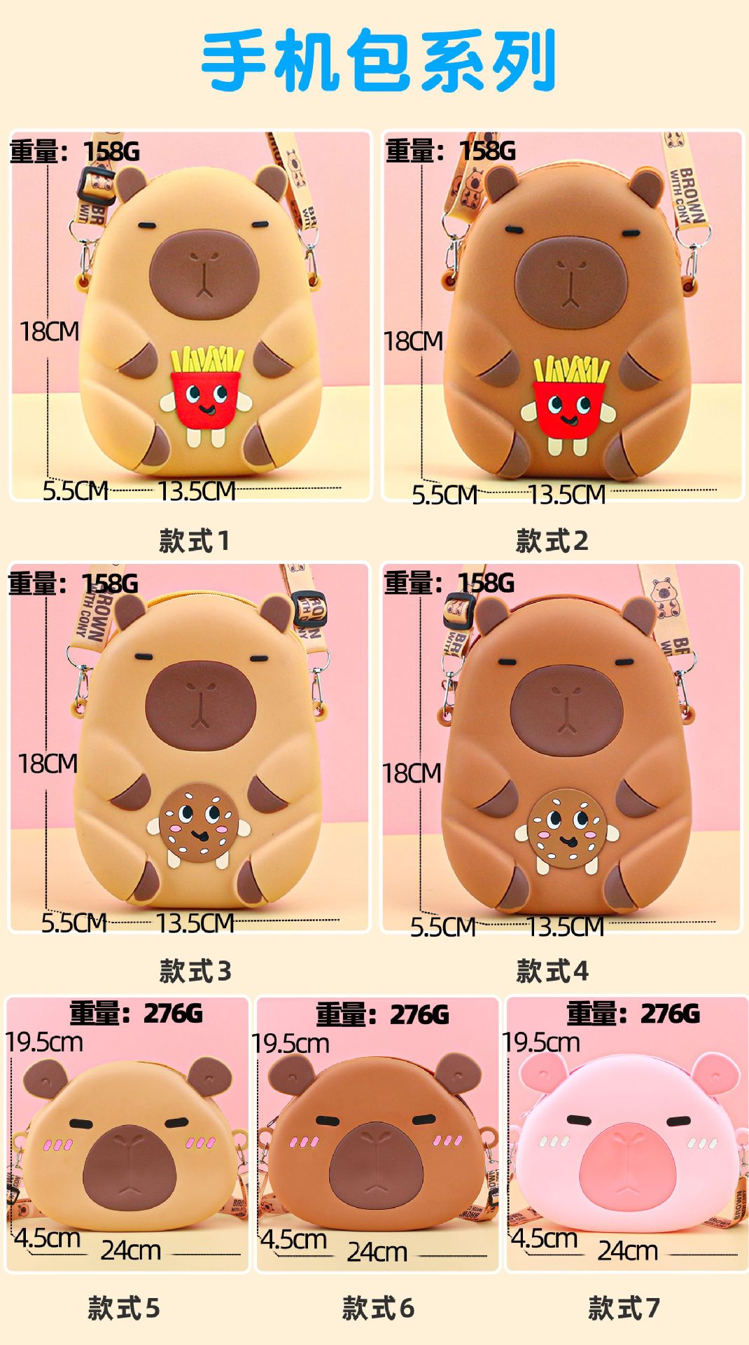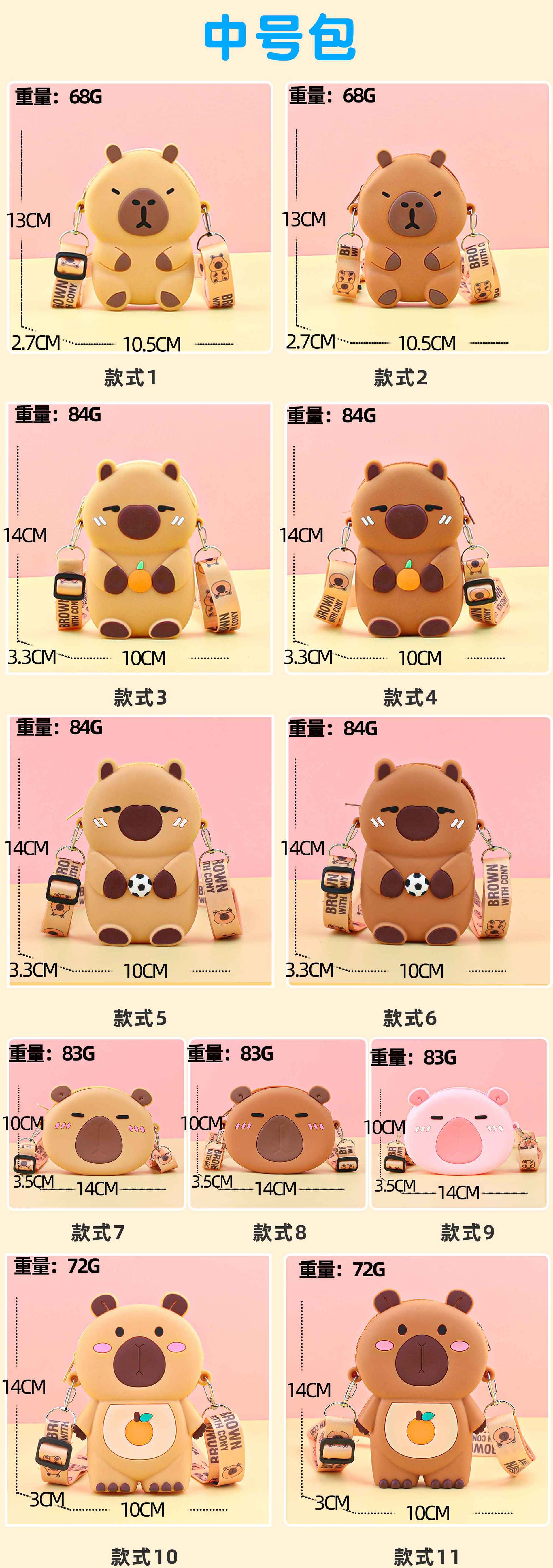 Kapibala 실리콘 어린이 크로스 바디 가방 어린 소녀 작은 가방 지갑 귀여운 Capybara 학생 휴대 전화 가방