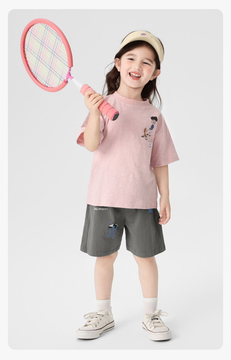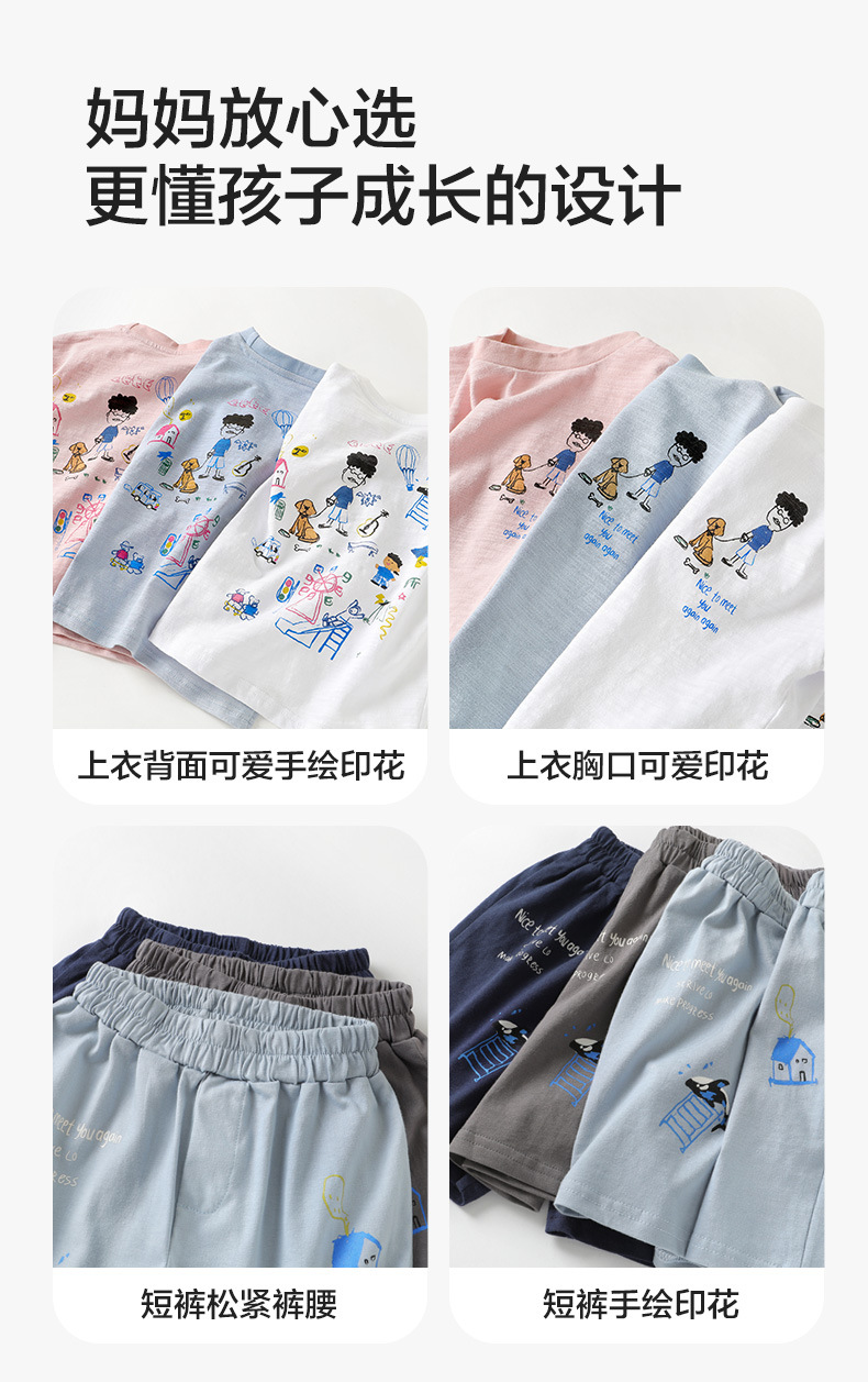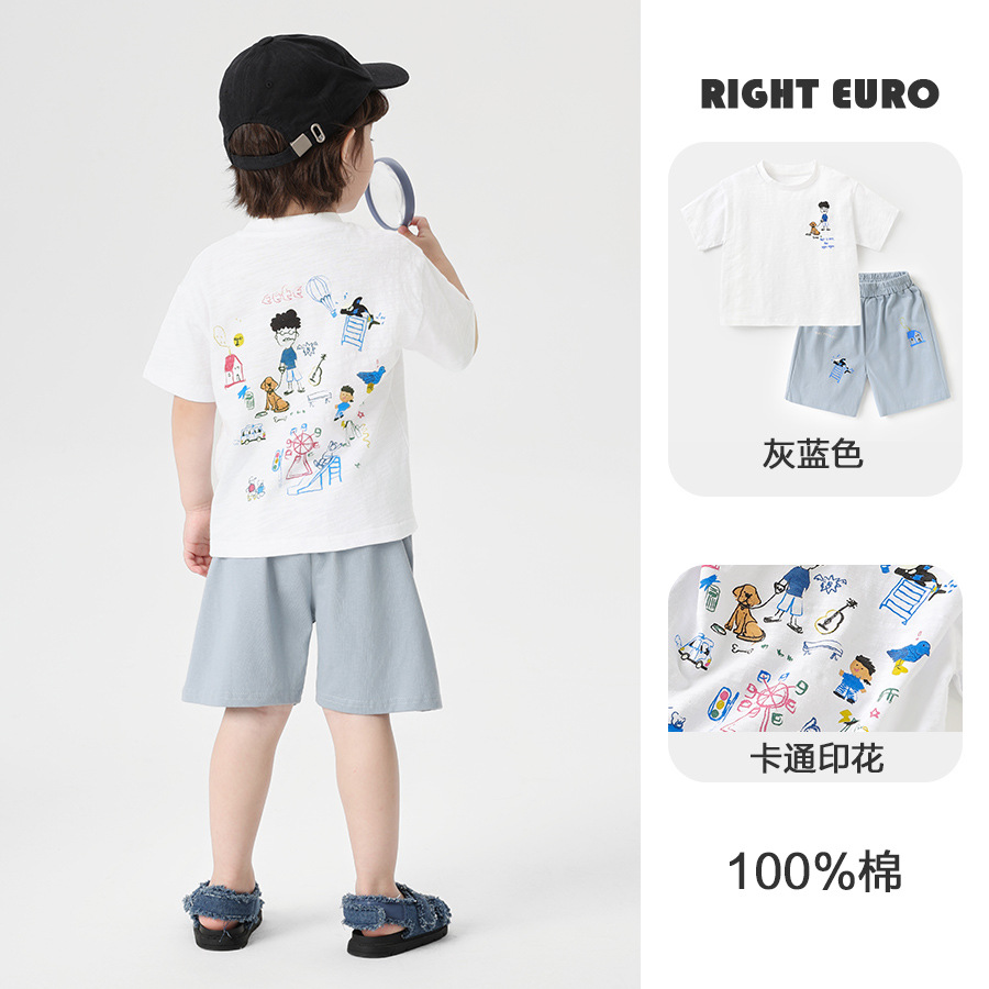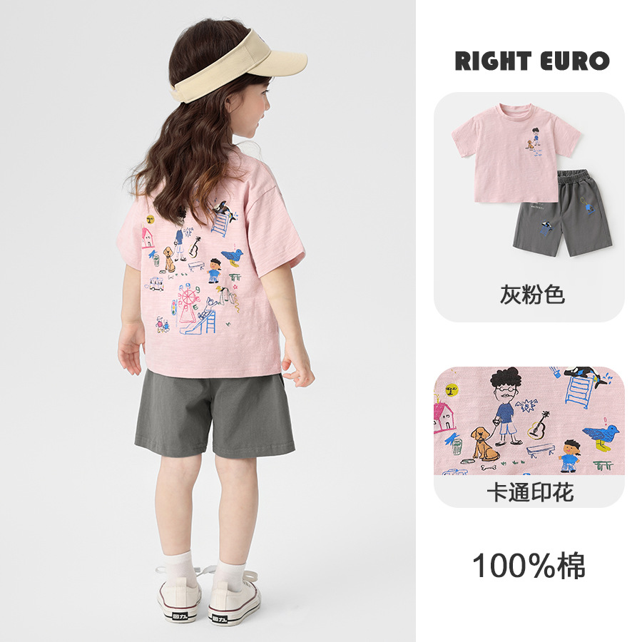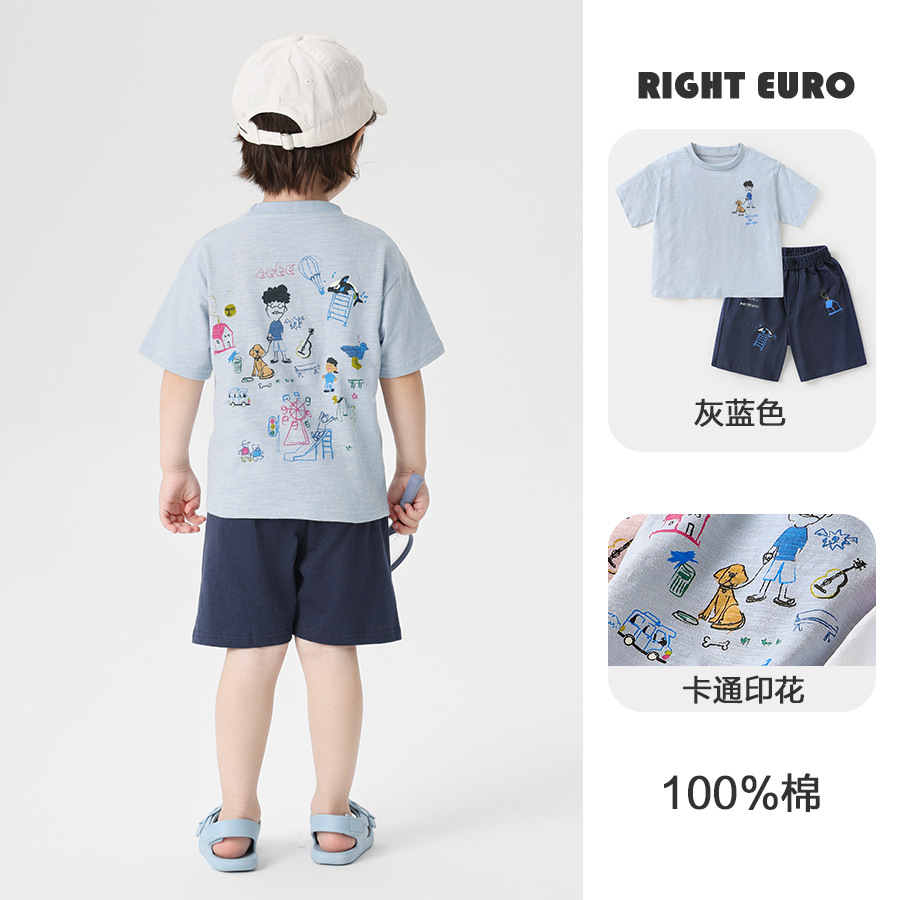 오른쪽 유럽 소년 반팔 스포츠 세트 여름 착용 아동복 여성 아기 티셔츠 짧은 바지 여름 얇은 소녀 트렌디스토어 가기