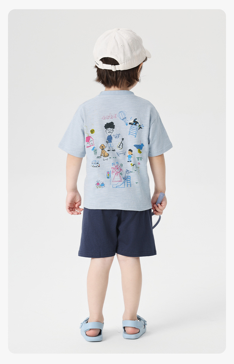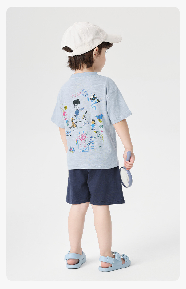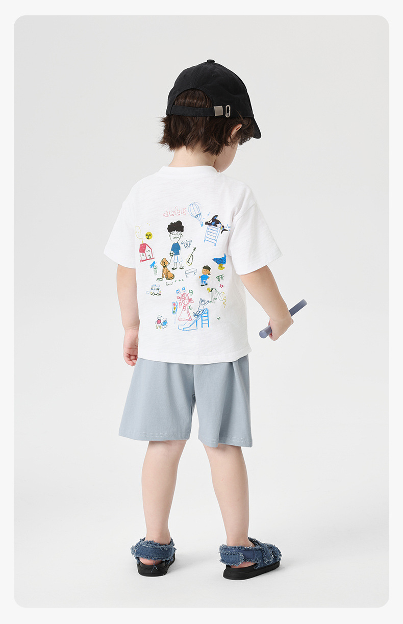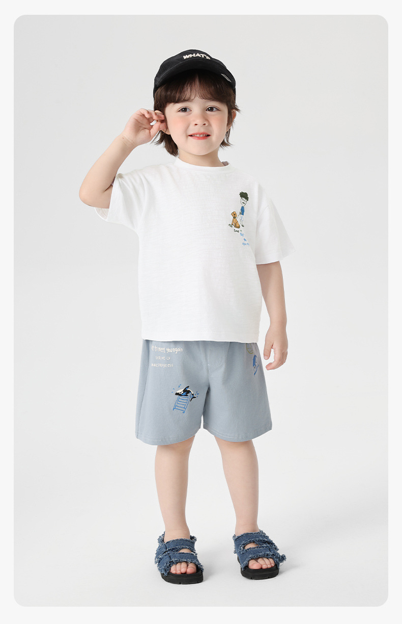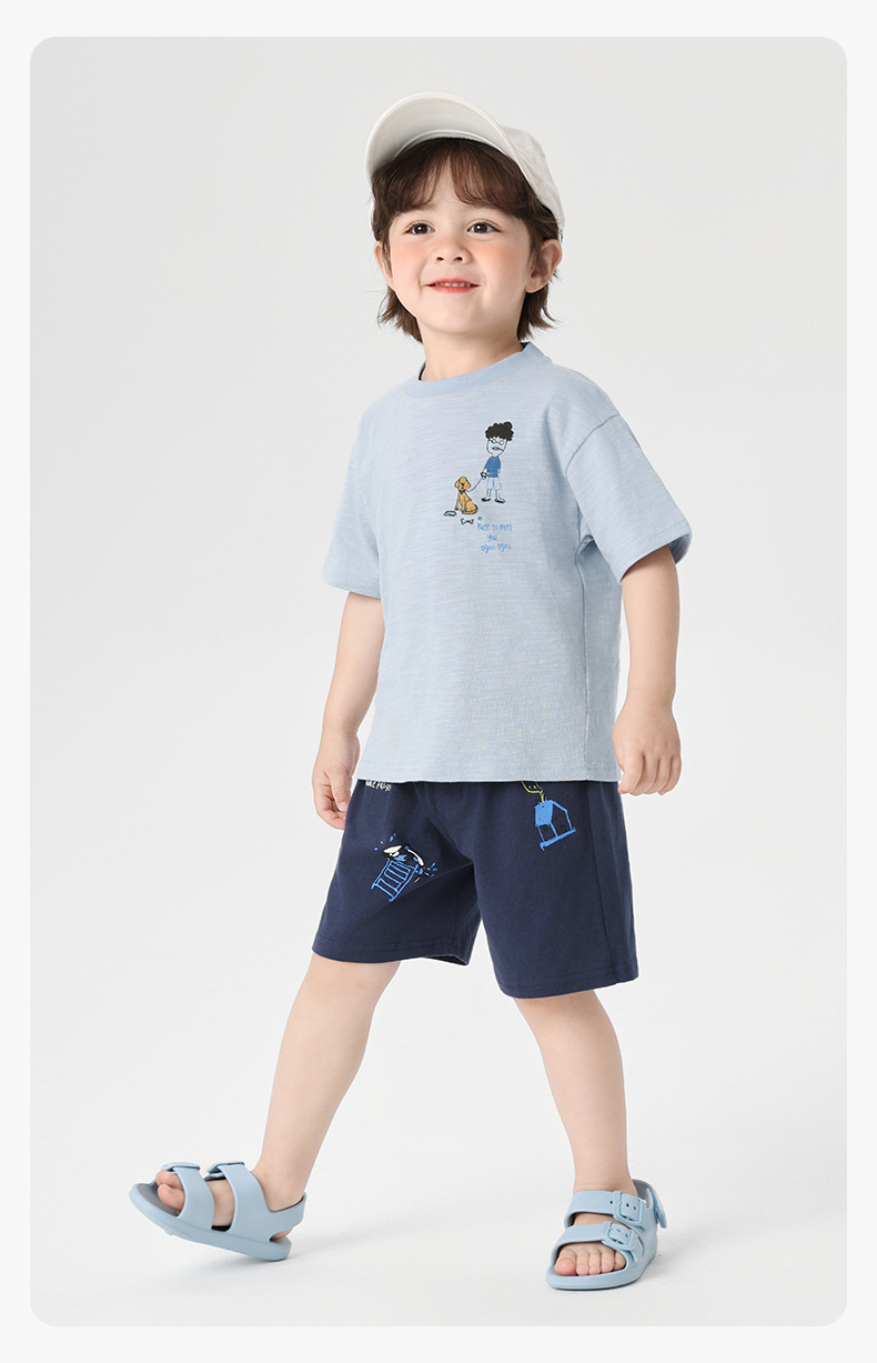 오른쪽 유럽 소년 반팔 스포츠 세트 여름 착용 아동복 여성 아기 티셔츠 짧은 바지 여름 얇은 소녀 트렌디스토어 가기
