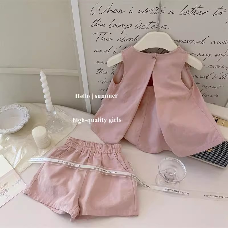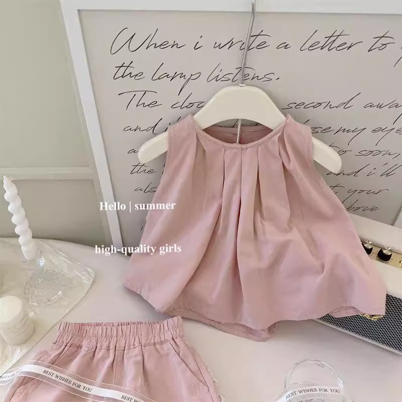 여자 여름 정장 2025 새로운 아기 소녀 여름 옷 인형 셔츠 탑 민소매 조끼 반바지 투피스 유행 세트