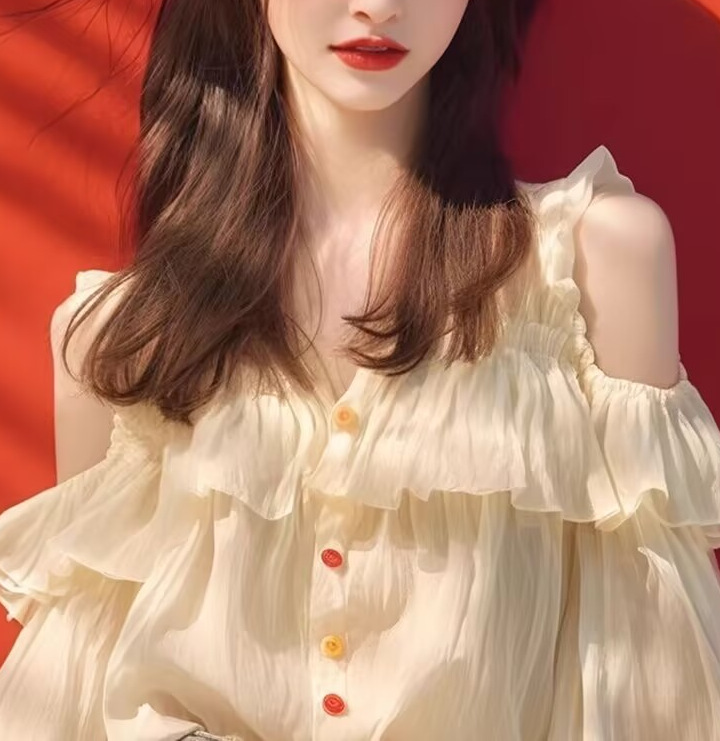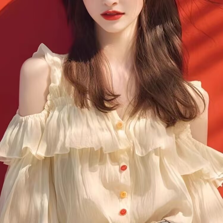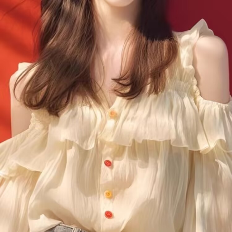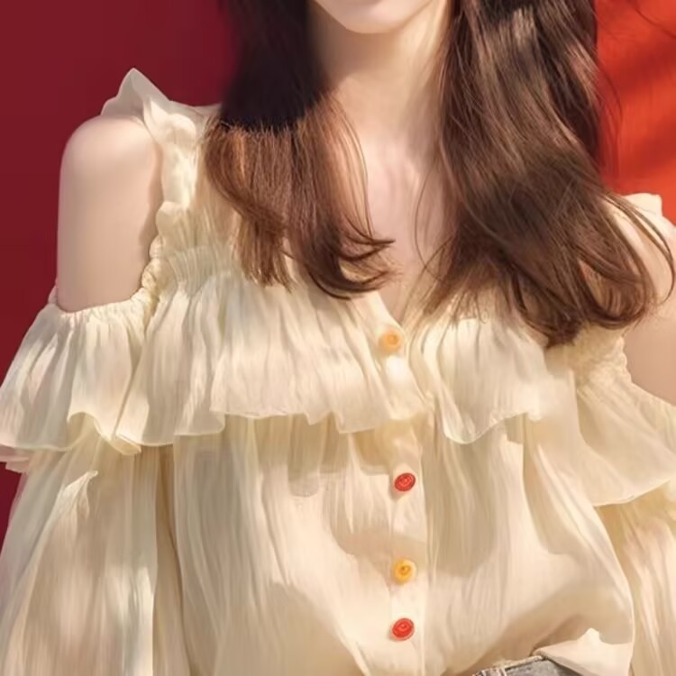 주름진 쉬폰 셔츠 여성용 봄과 가을 느슨한 쉬폰 셔츠 얇은 하이 엔드 어깨 디자인 긴팔 탑