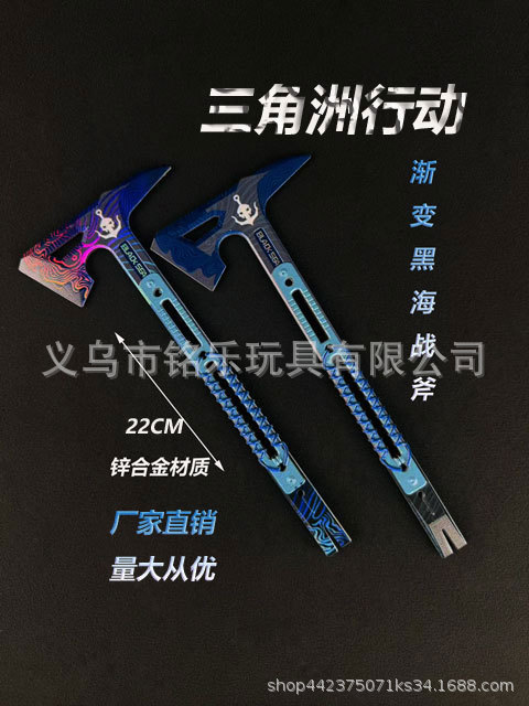 델타 작전 같은 스타일 22CM 그라디언트 검은 바다 전술 도끼 합금 무기 모델 장식품 손으로 만든 장난감