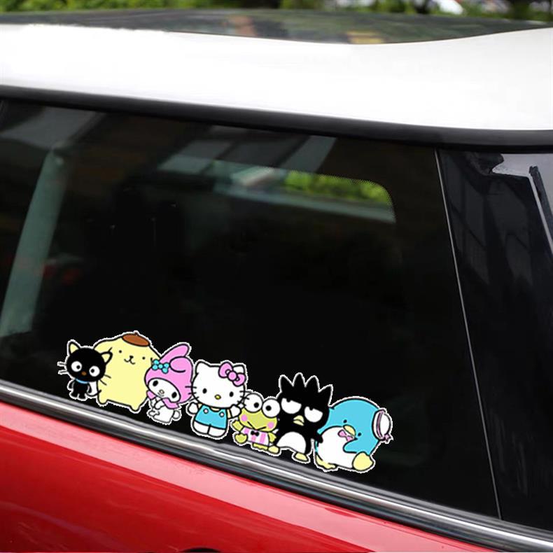 Sanrio 귀여운 만화 스티커 자동차 창 유리 자동차 테일 범퍼 스크래치 맞춤형 전기 오토바이 바디 스티커