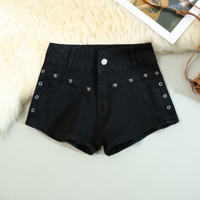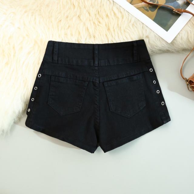 2025 봄 여름 여성 한국 스타일 블랙 루즈 슬리밍 와이드 레그 핫 팬츠 하이 웨이스트 슬리밍 패션 데님 반바지