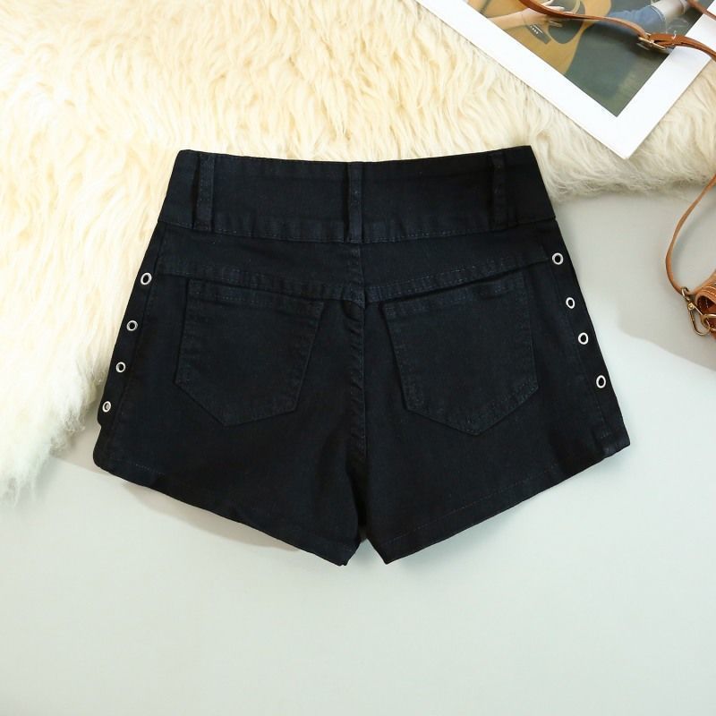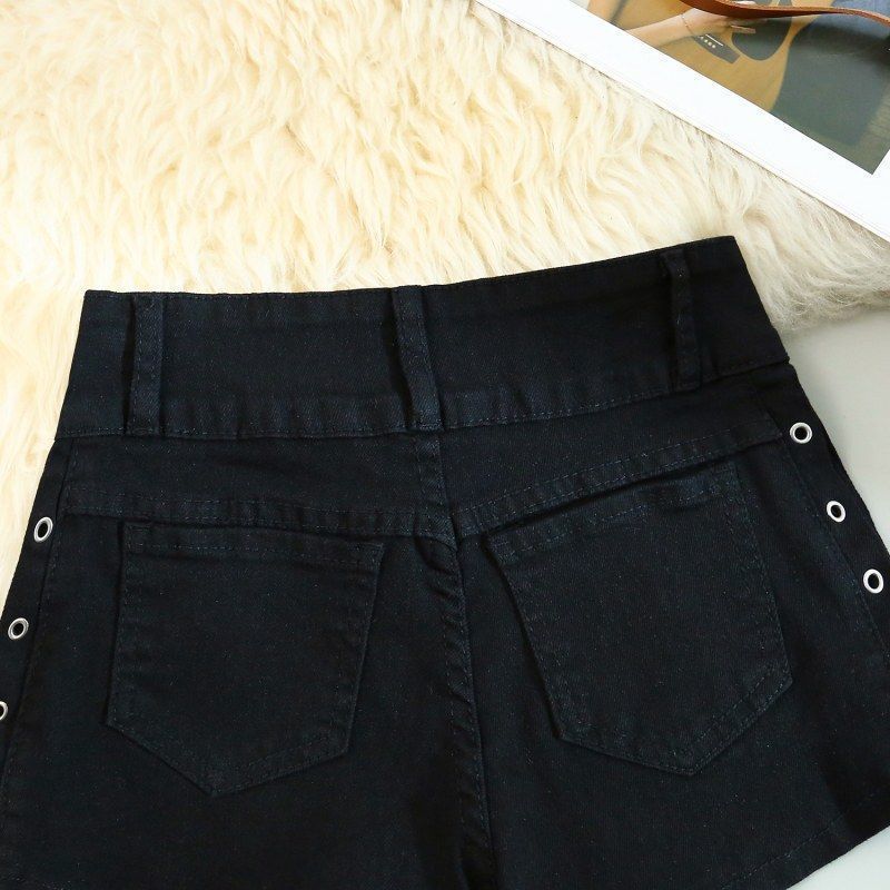 2025 봄 여름 여성 한국 스타일 블랙 루즈 슬리밍 와이드 레그 핫 팬츠 하이 웨이스트 슬리밍 패션 데님 반바지스토어 가기