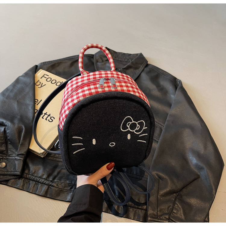 미니 KT 고양이 배낭 유행 작은 한국어 버전 귀여운 만화 소녀 데님 유행 유행 작은 배낭스토어 가기