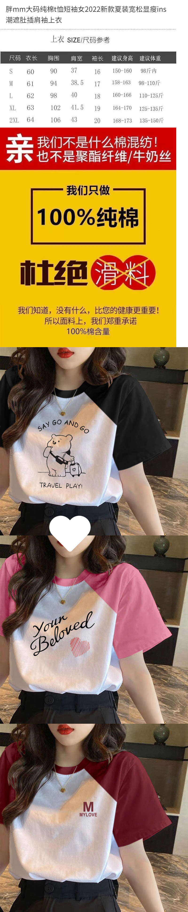 Fat mm 플러스 사이즈 순수 코튼 티셔츠 반팔 여성 2024 뉴 여름 착용 루즈 슬리밍 인 트렌디 배 커버 래글런 슬리브 탑스토어 가기