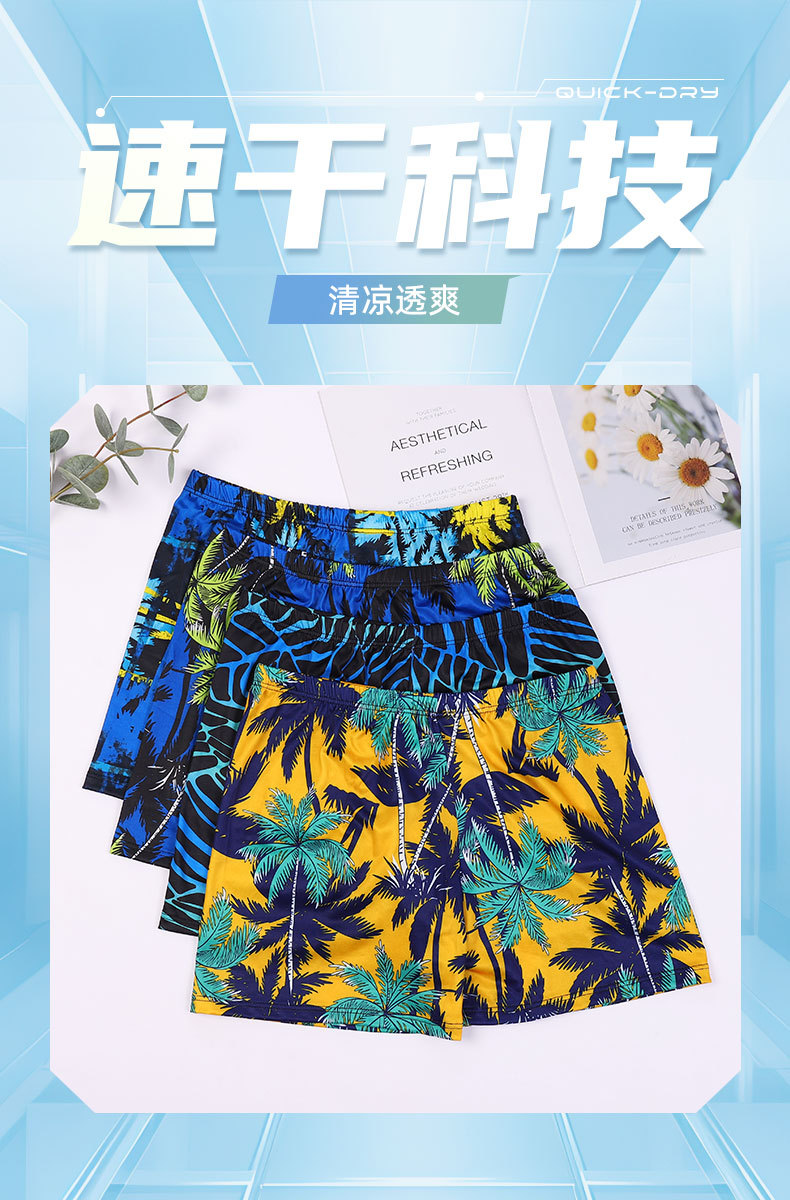 새로운 속건성 아이스 실크 반바지, 비치 팬츠, 통기성이 좋은 꽃무늬 수영 팬츠, 캐주얼 남성용 프린트 5부 루즈 팬츠