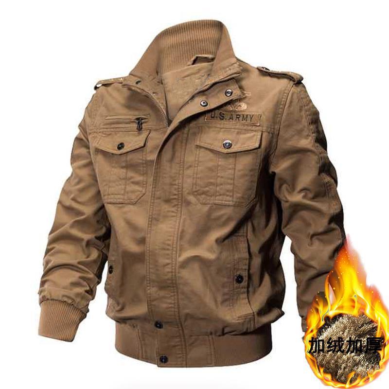 가을과 겨울 특수 부대 남자 멀티 포켓 군사 코트 캐주얼 바지 재킷 플러스 사이즈 느슨한 기모