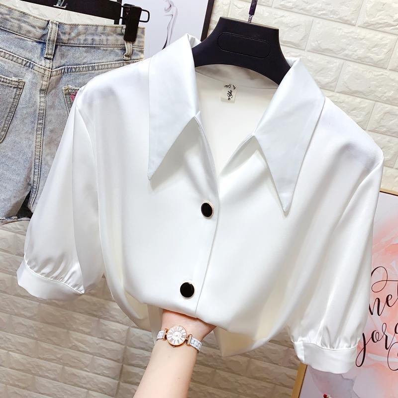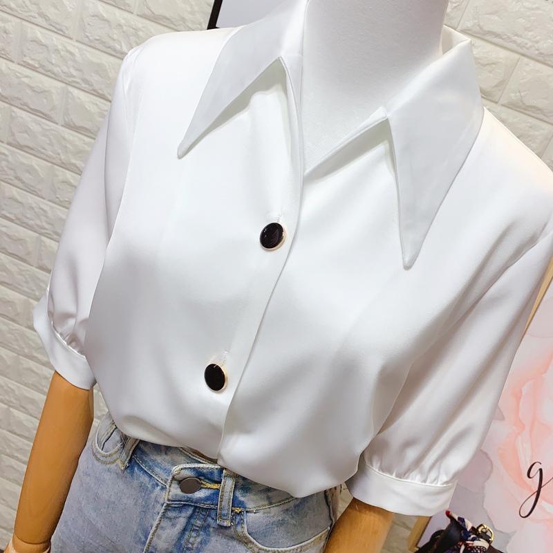 2025 새로운 얇은 여성 셔츠 여성의 작은 디자인 봄과 여름 여성스러운 반팔 쉬폰 v 넥 탑