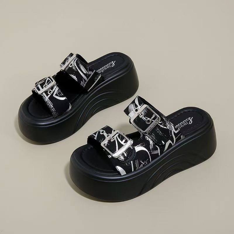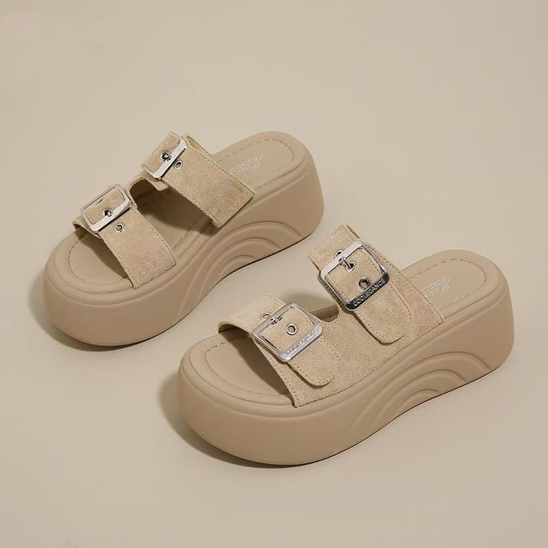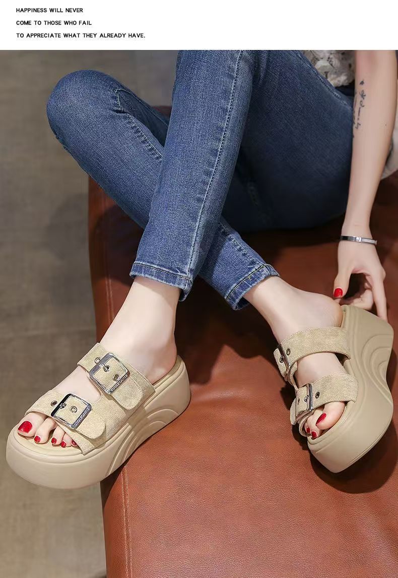 여성 여름 아우터용 고급 두꺼운 밑창 슬리퍼 2025 새로운 스타일 작은 키가 큰 샌들 해변 비치 샌들스토어 가기
