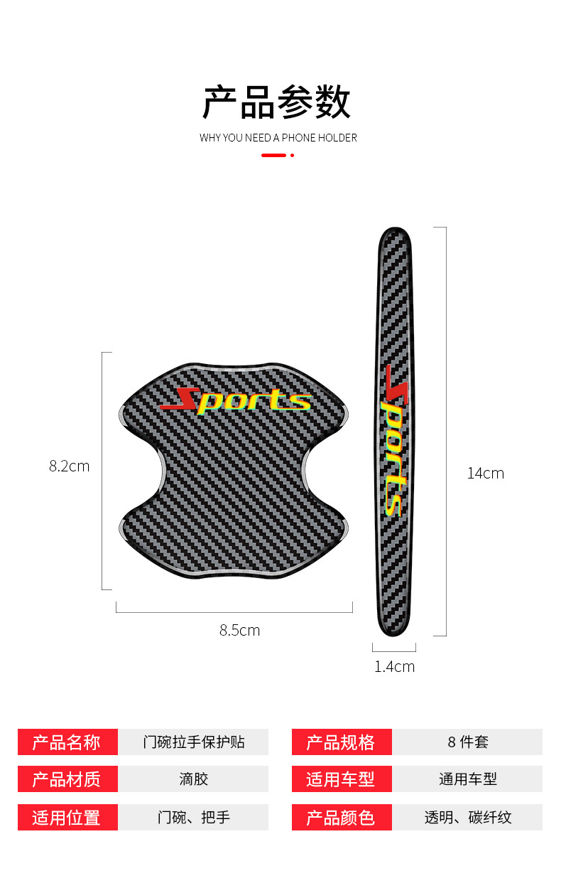 공장 직접 공급 도어 보울 보호 스티커, 도어 충돌 방지 스트립, 백미러 보호 스트립, 긁힘 방지 및 도어 핸들 스티커, 탄소 섬유
