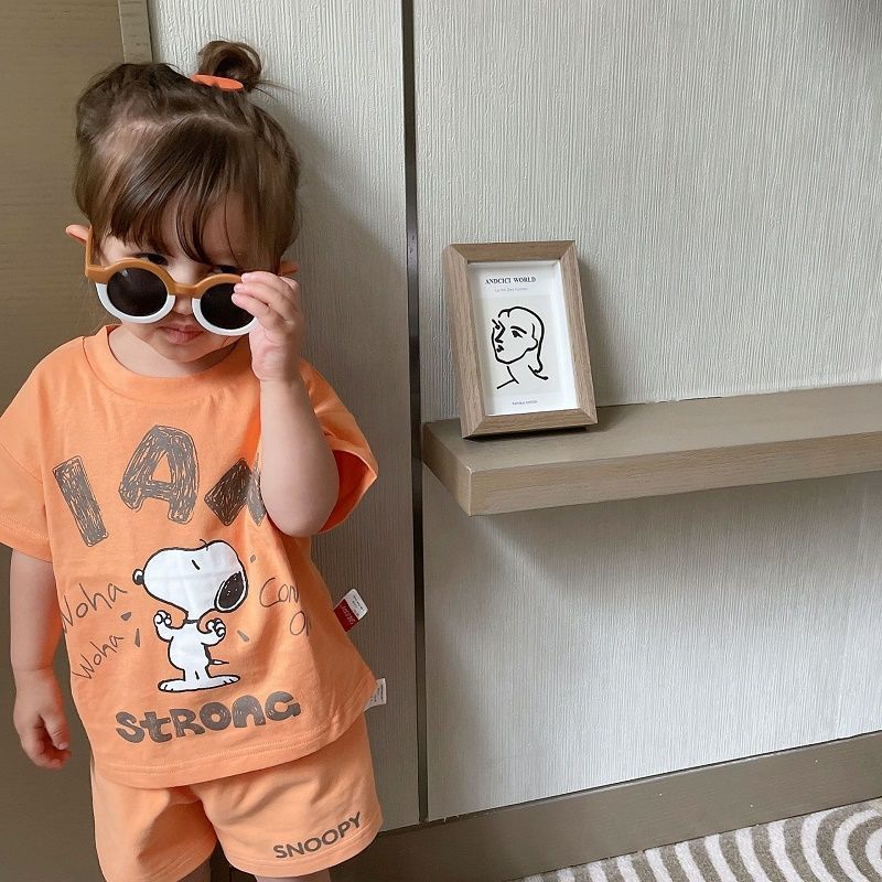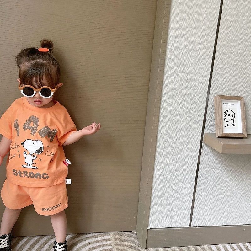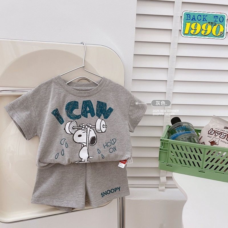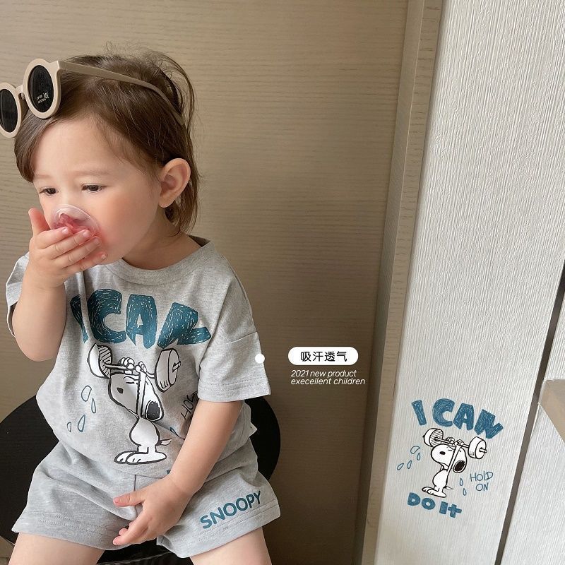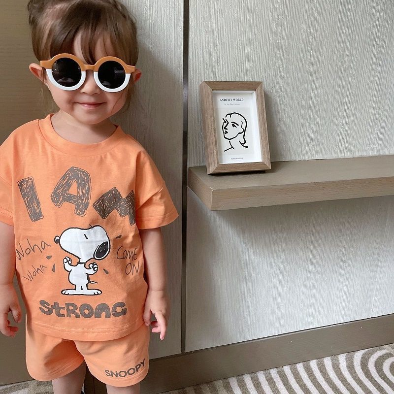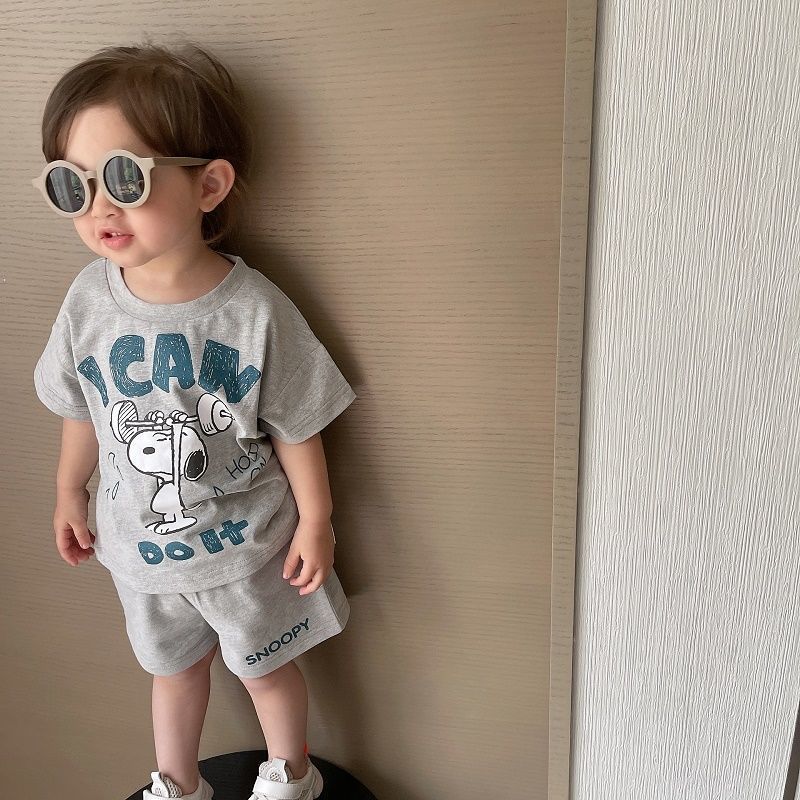 아기 소년 여름 옷 2025 새로운 반팔 양복 어린이 잘 생긴 캐주얼 양복 소년과 소녀 한국어 버전 만화 투피스 세트