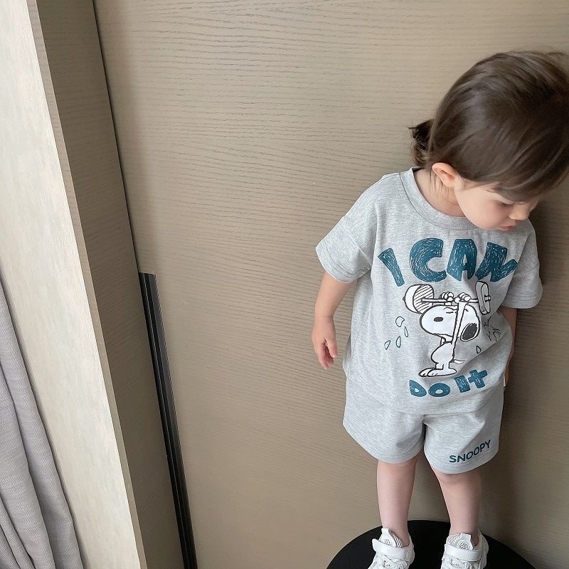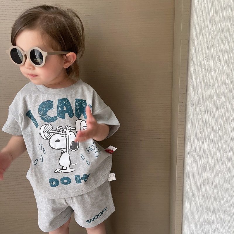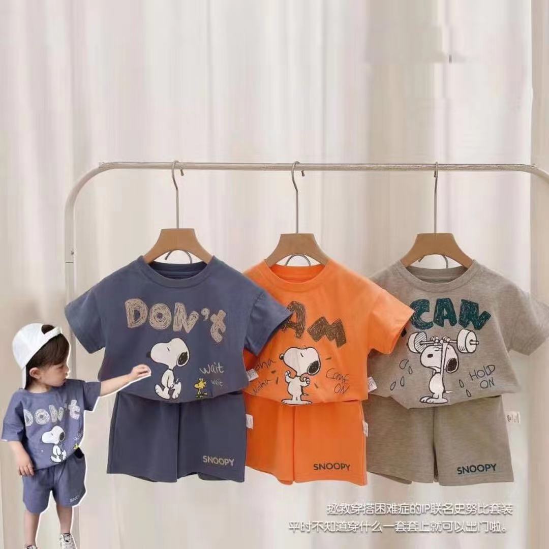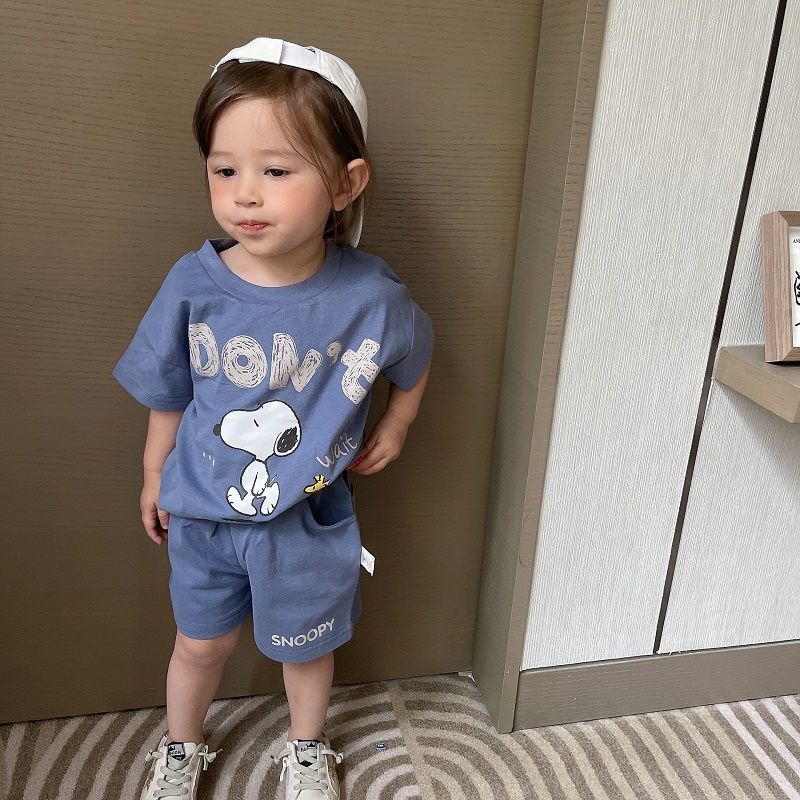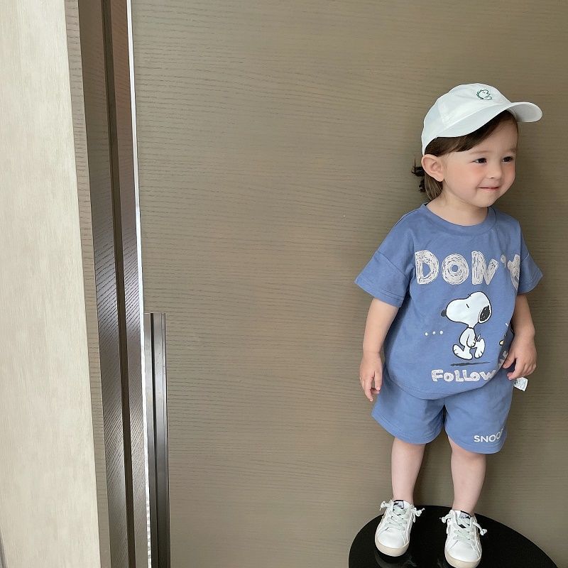 아기 소년 여름 옷 2025 새로운 반팔 양복 어린이 잘 생긴 캐주얼 양복 소년과 소녀 한국어 버전 만화 투피스 세트스토어 가기