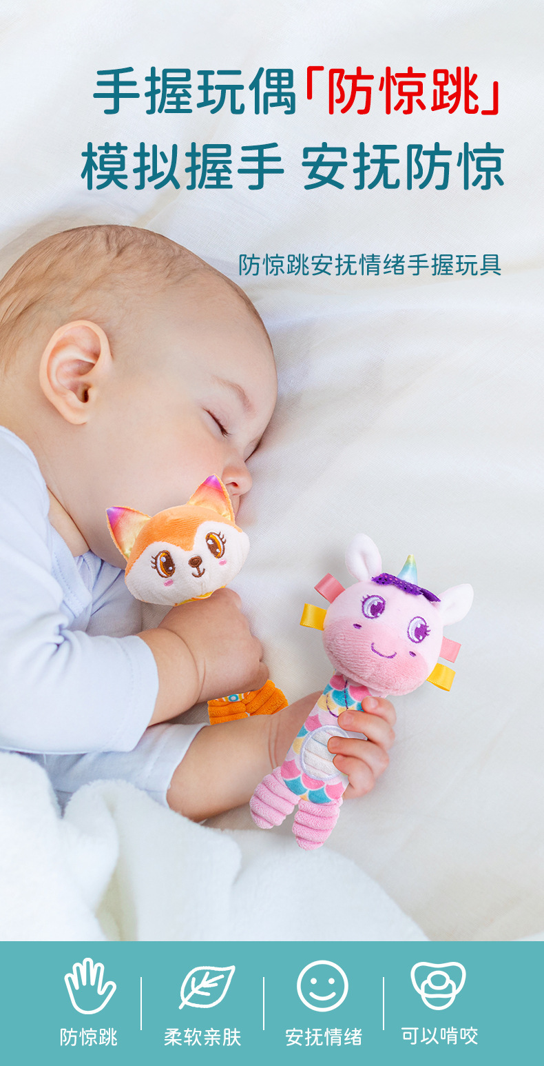 아기의 깜짝 놀라기 방지 손잡이 인형, 유니콘, 신생아 진정 손잡이 로프 장난감, 수면 유도 유물 스트랩스토어 가기