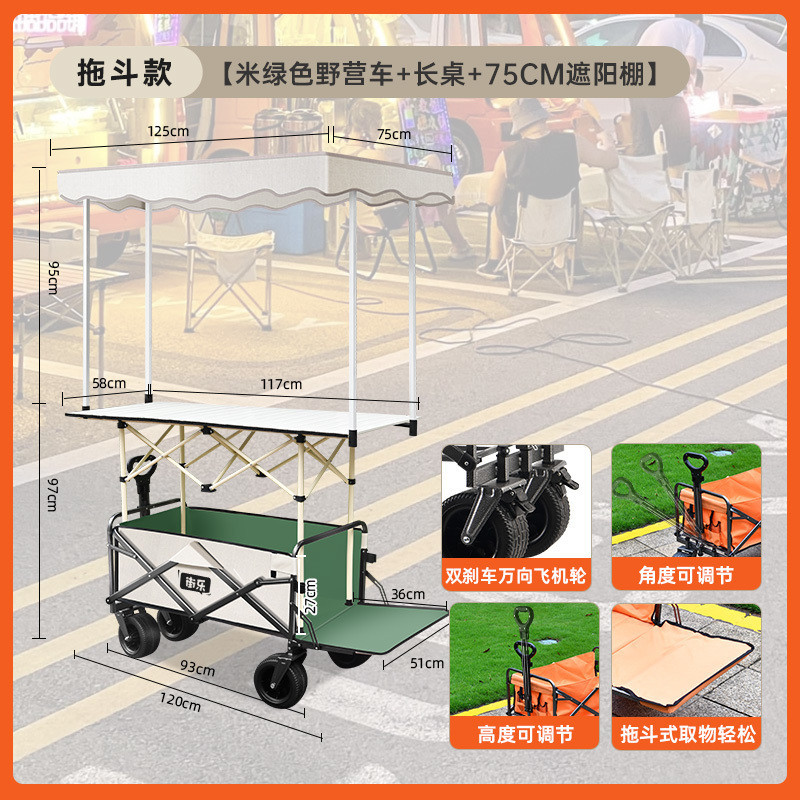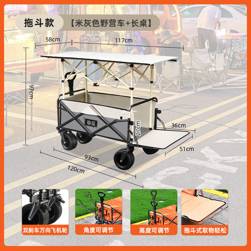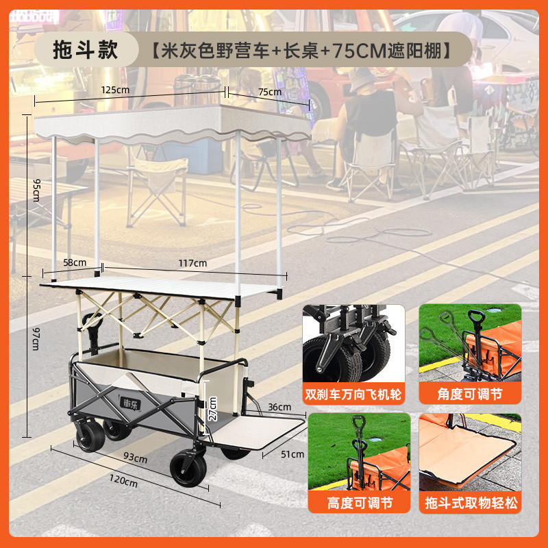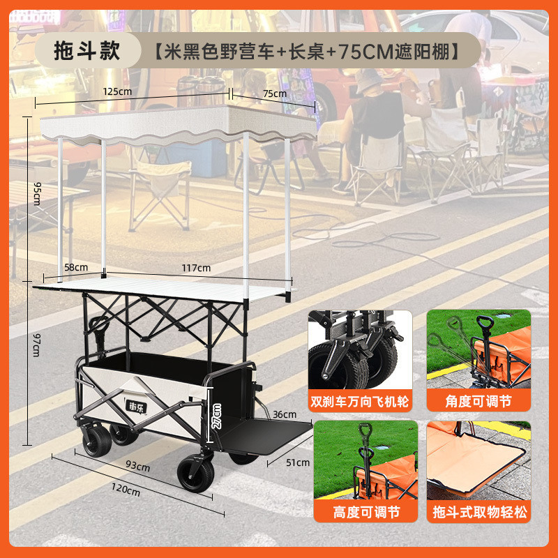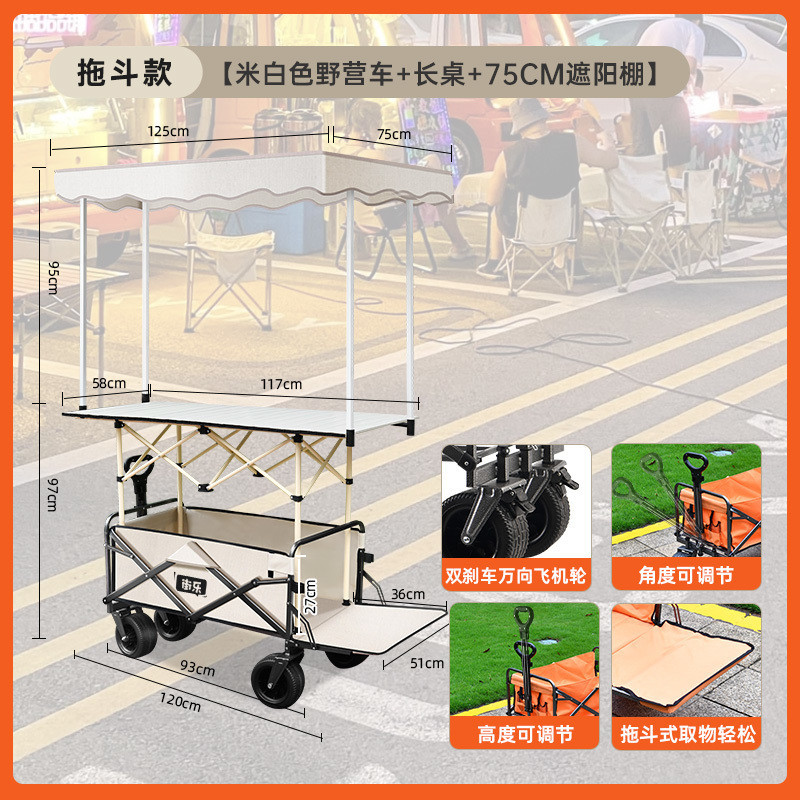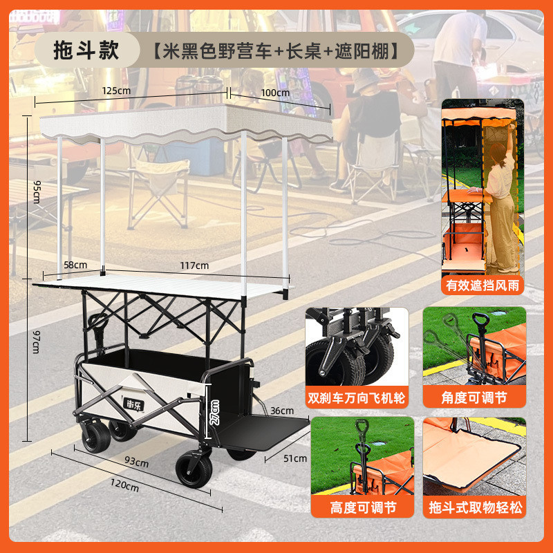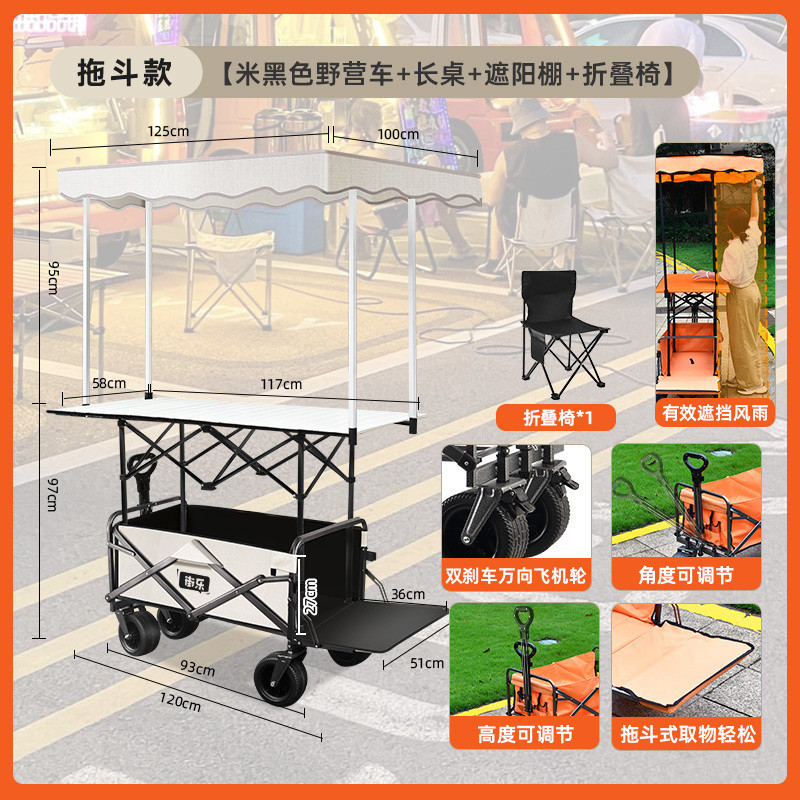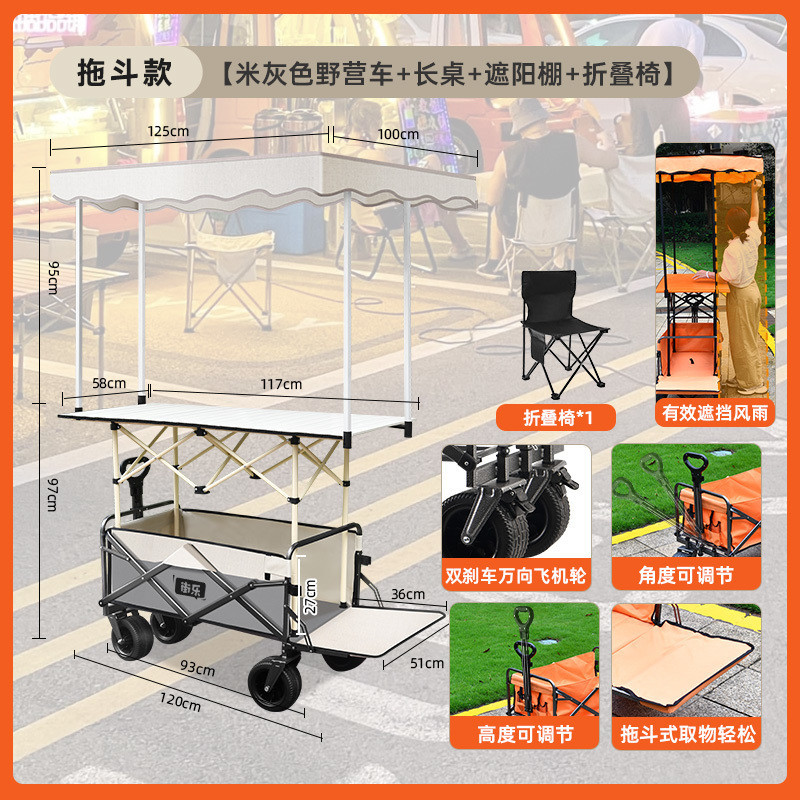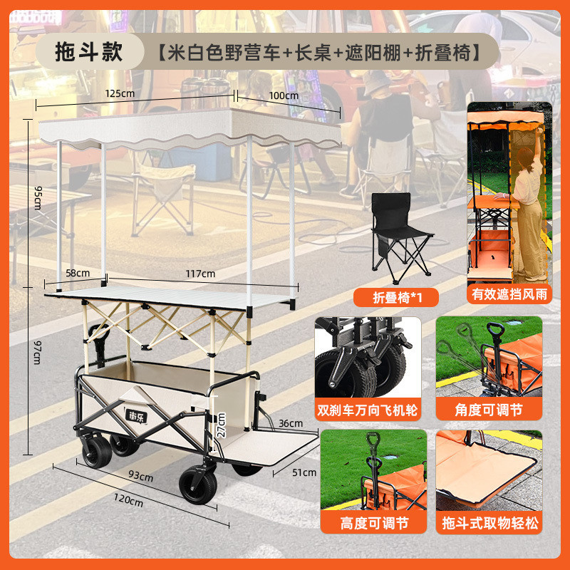 • 성숙한 베이지 [이륜 브레이크] - [확장 차양] 트레일러 트럭 + 리프팅 접이식 테이블 + 의자