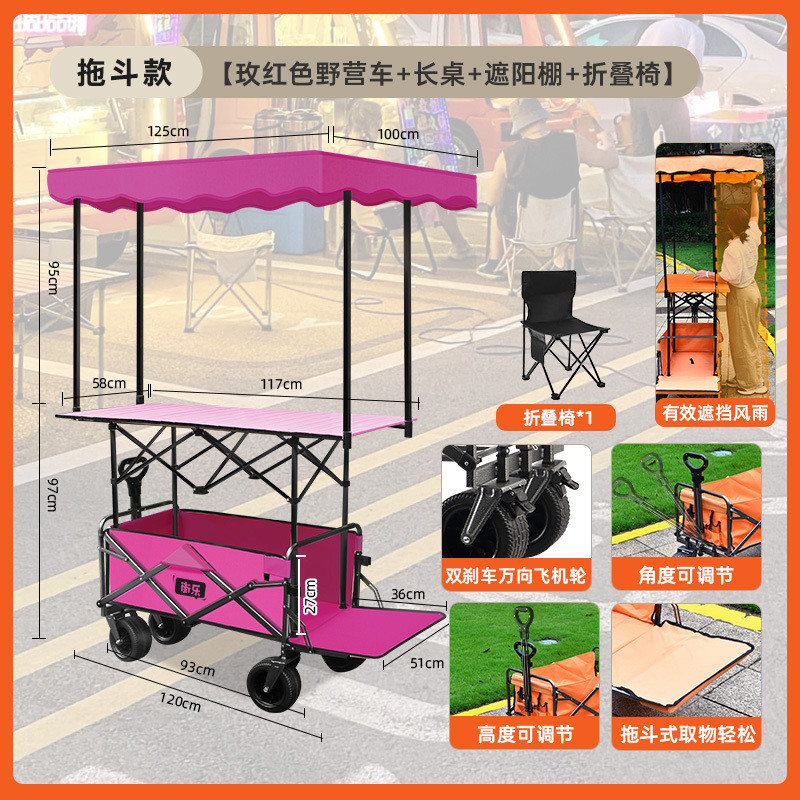 • 매력적인 로즈 레드 [이륜 브레이크] - [차양 확대] 트레일러 트럭 + 리프팅 접이식 테이블 + 의자