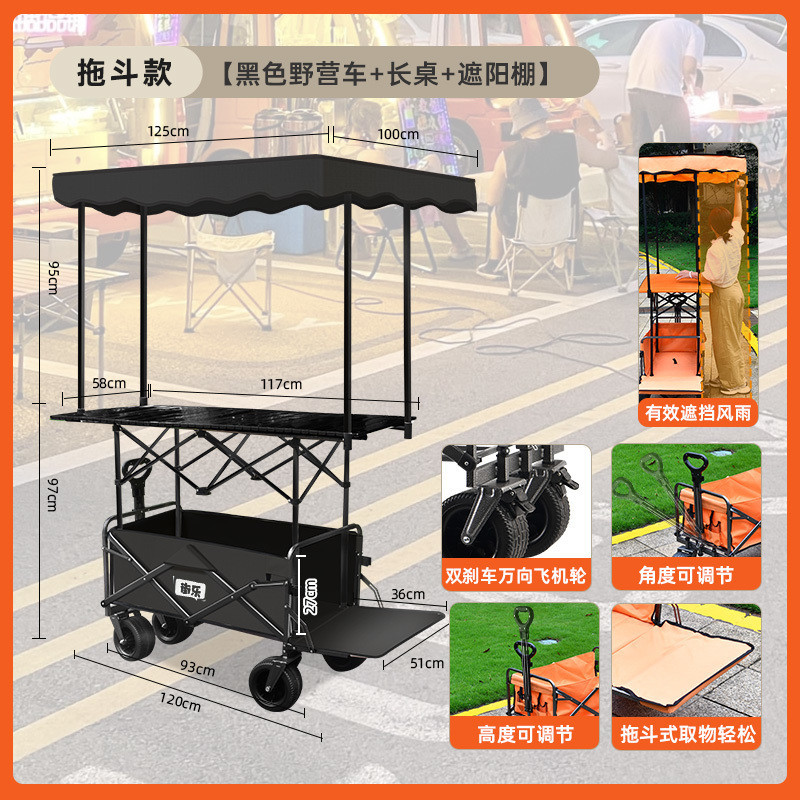 • 진뎬 블랙 [이륜 브레이크] - [확장 차양] 트레일러 트럭 + 리프팅 접이식 테이블 + 의자