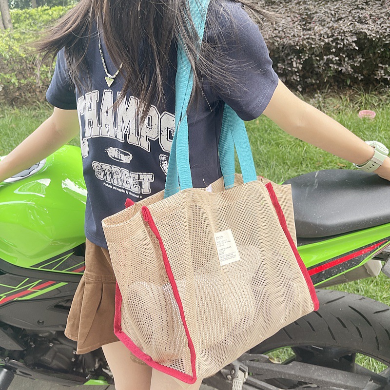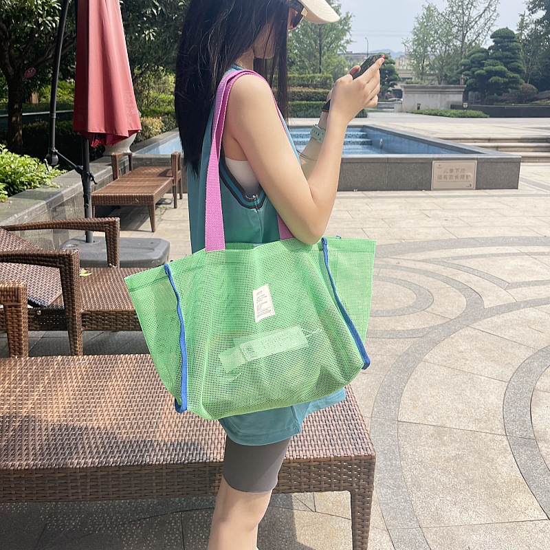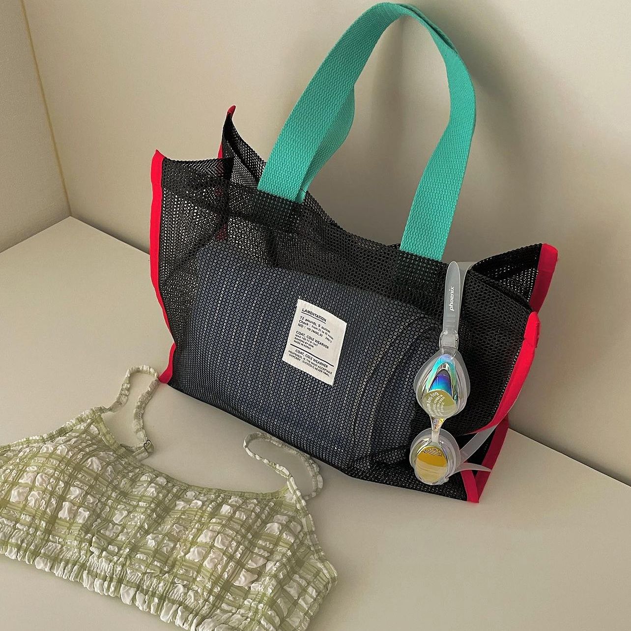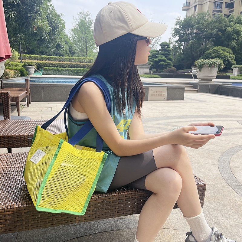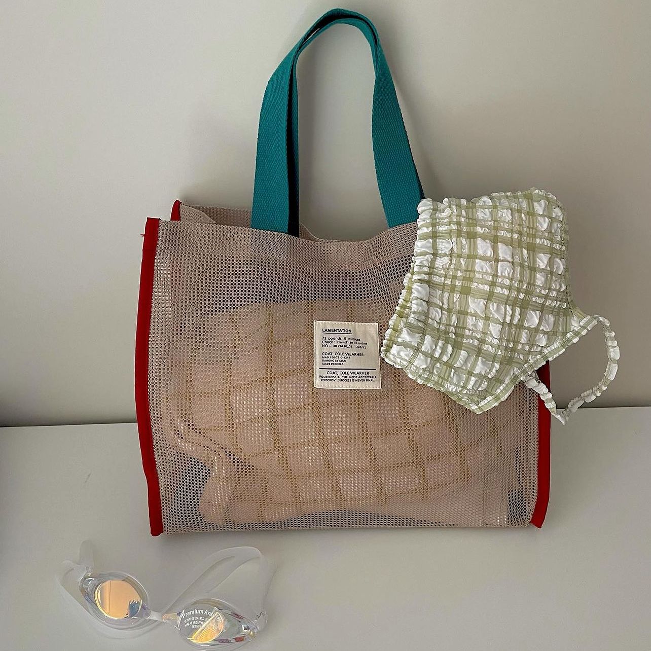 인 한국식 여름 도파민 컬러 매칭 비치 백 컬러 대비 핸드백 수영 보관 가방 대용량 워시 백