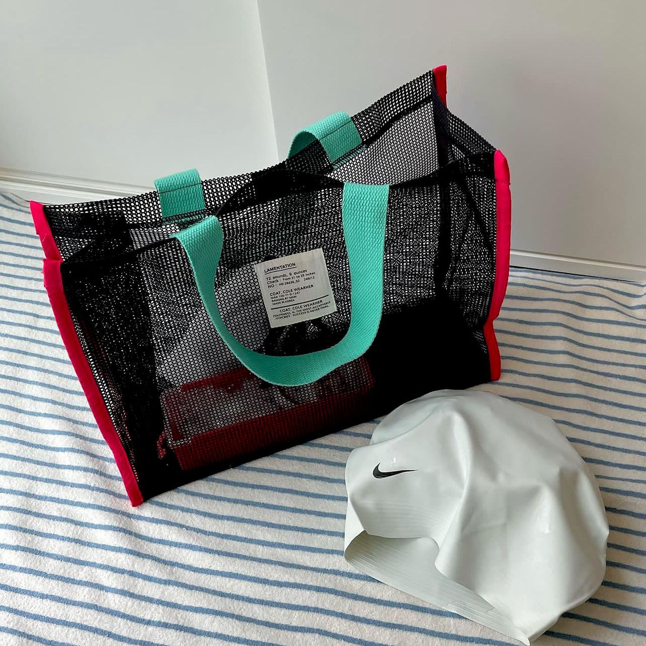 인 한국식 여름 도파민 컬러 매칭 비치 백 컬러 대비 핸드백 수영 보관 가방 대용량 워시 백스토어 가기
