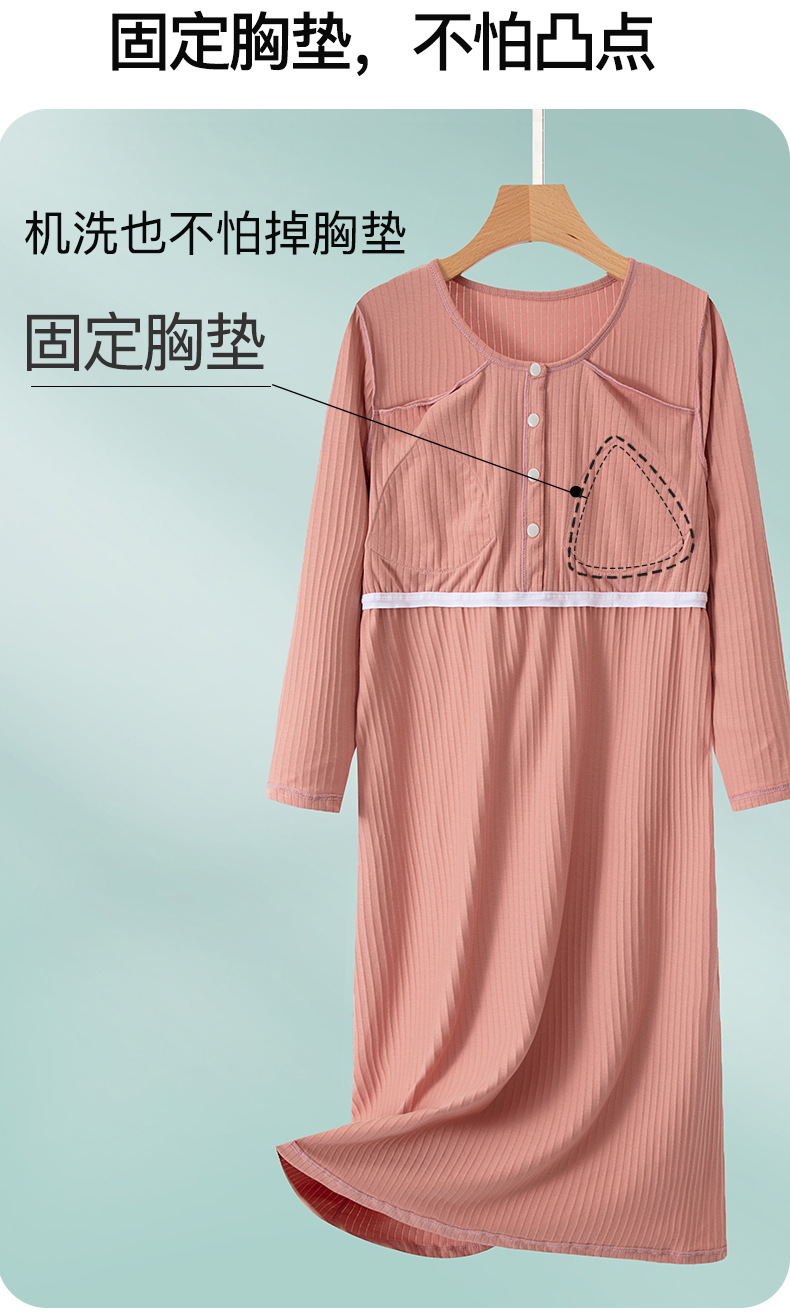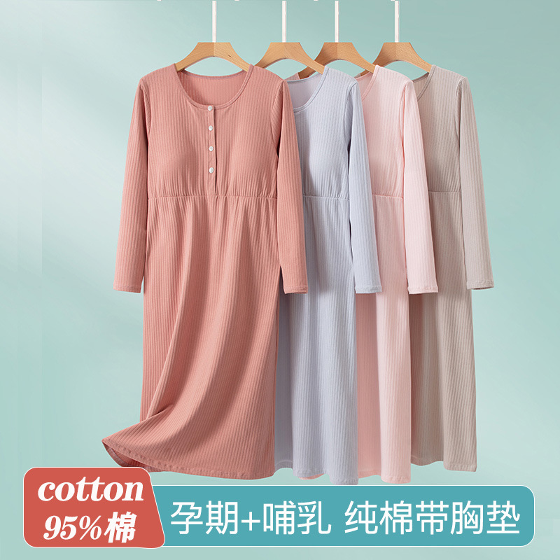 가슴 패드가 있는 임산부 잠옷, 순면 산후 수유 잠옷, 임산부 드레스, 2025년 신상 여름 얇은 가정복