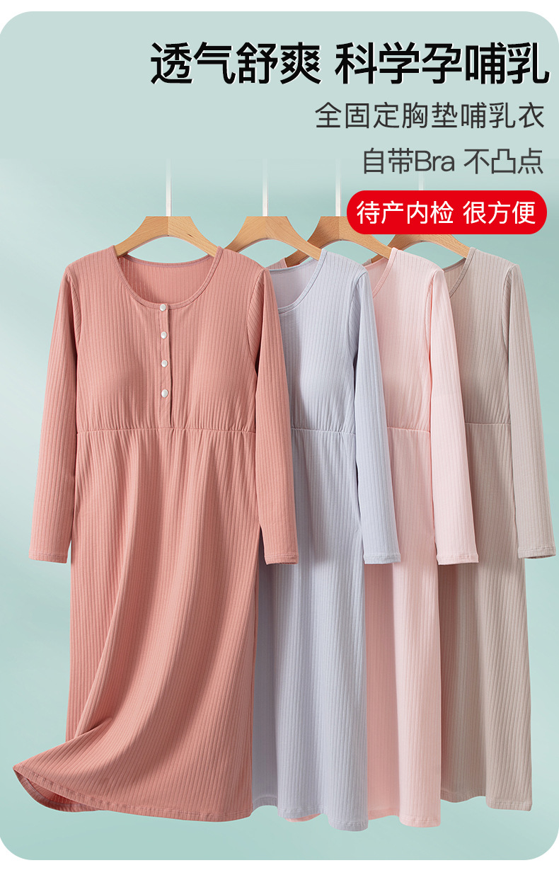 가슴 패드가 있는 임산부 잠옷, 순면 산후 수유 잠옷, 임산부 드레스, 2025년 신상 여름 얇은 가정복스토어 가기