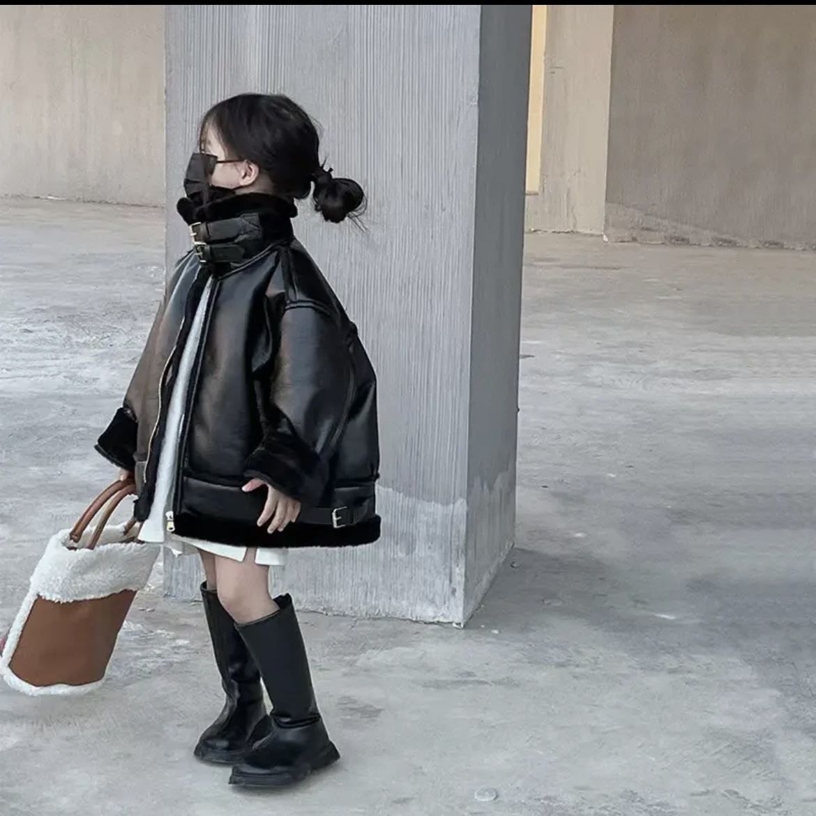 여아용 플러시 가죽 비행 재킷 2023 남아용 스탠드 칼라 모조 모피 일체형 오토바이 재킷 아메리칸 트렌드스토어 가기