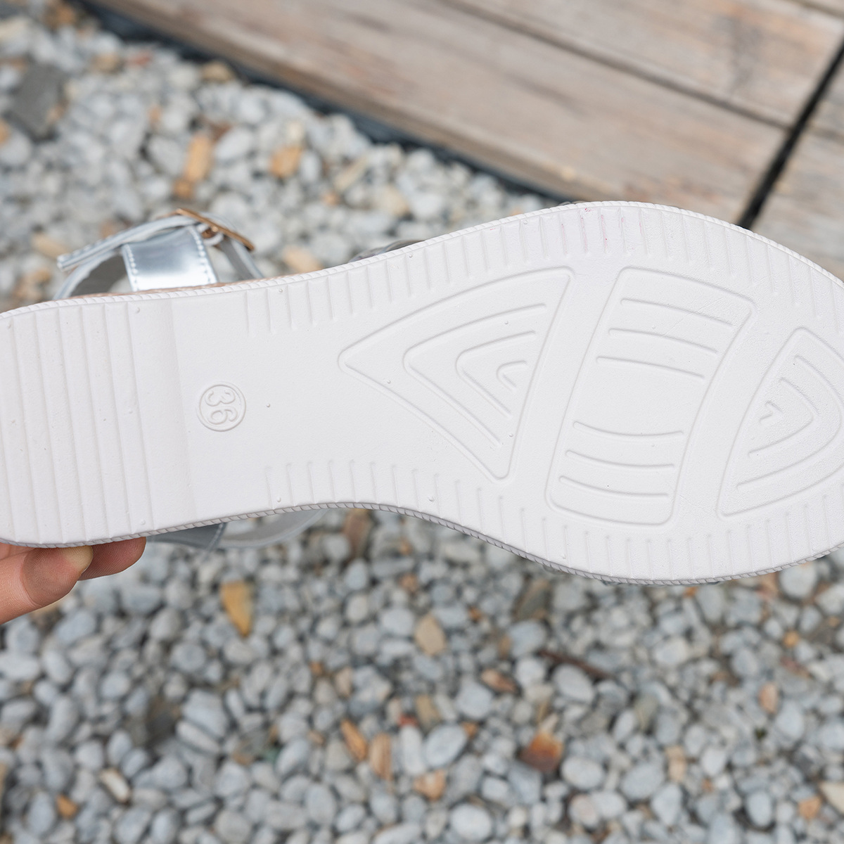 유럽과 미국의 플러스 사이즈 웨지 샌들 여성용 새 봄 한 줄 버클 미드 힐 7.5cm 오픈 발가락 샌들