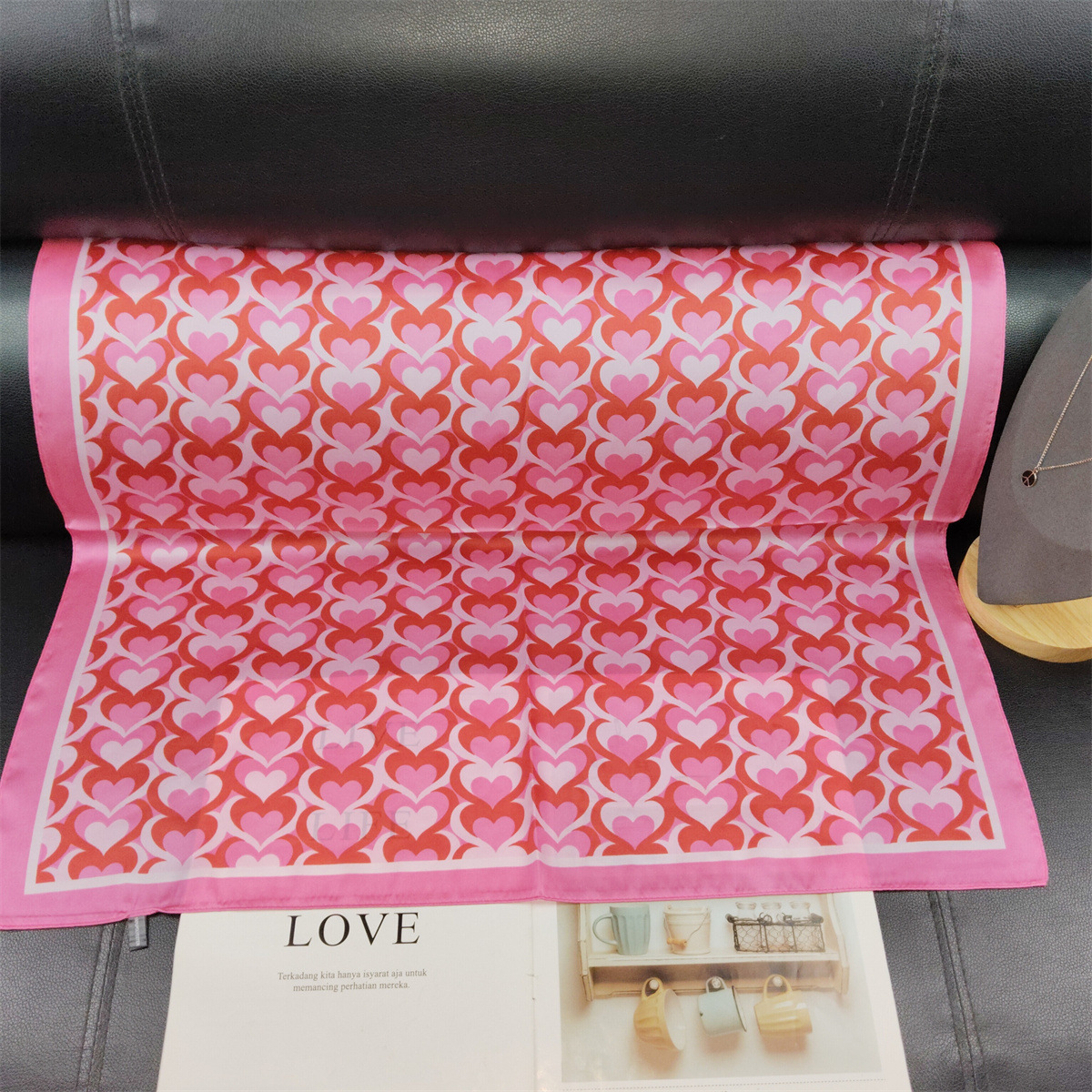 70*70cm 새로운 복숭아 하트 실크 스카프, 고급 모조 실크 스퀘어 스카프, 패셔너블하고 다재다능한 바인딩 백, 머리띠 및 스카프 도매