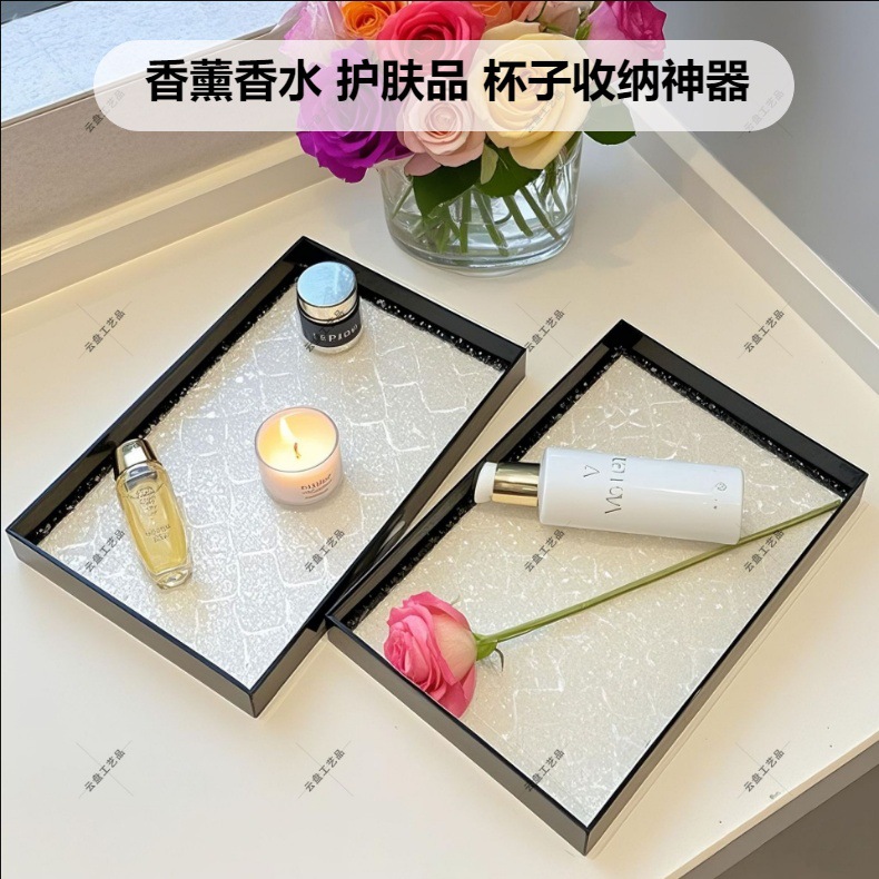 가정용 거실 향수 키 보관 물컵 주전자 욕실 화장실을위한 인기있는 고급 직사각형 트레이스토어 가기