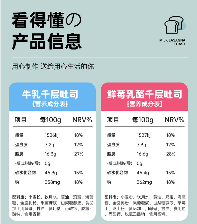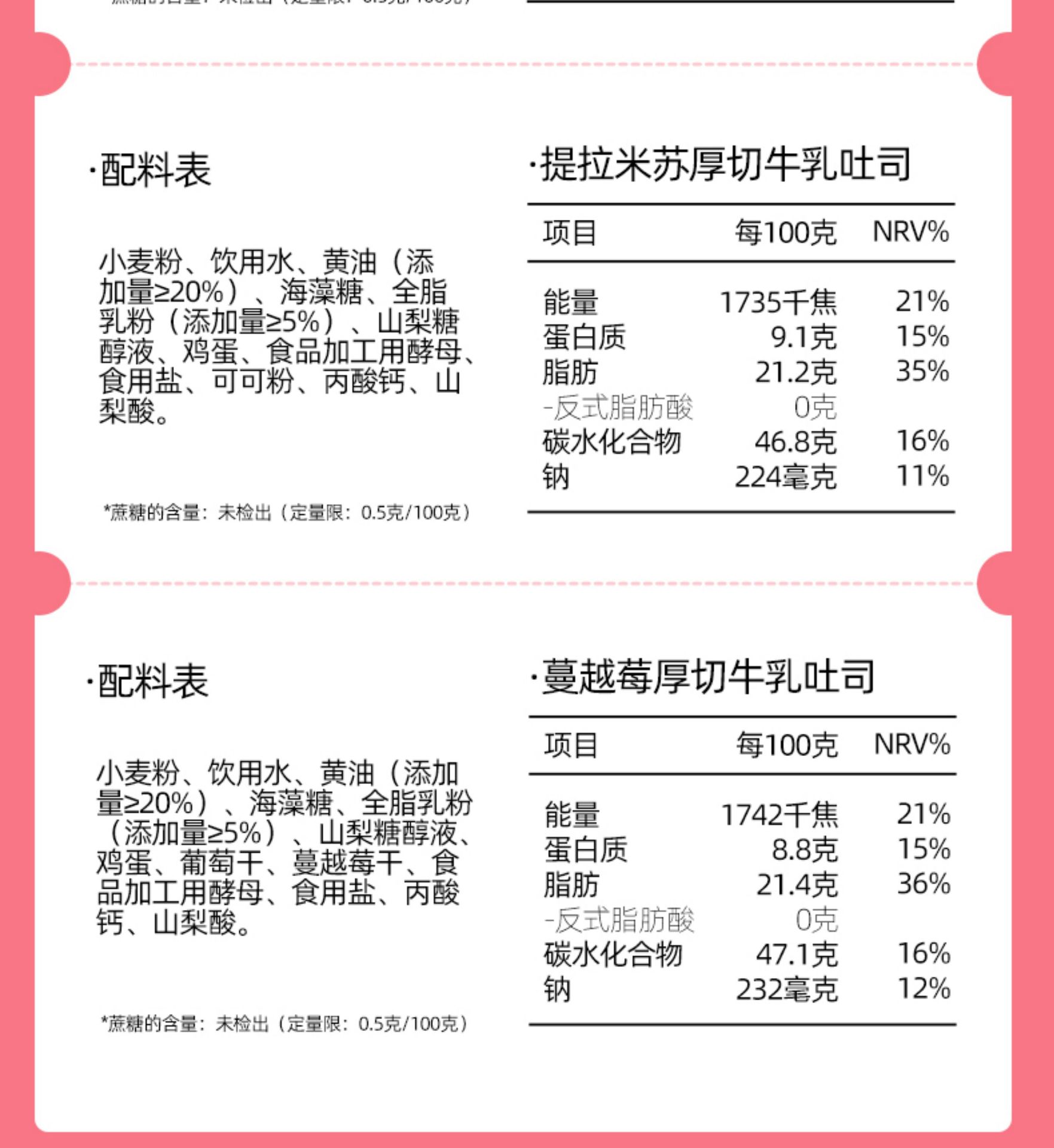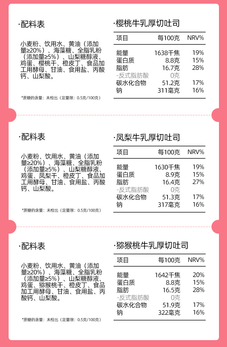 Yan Xiaobei 버터 두껍게 자른 토스트 빵 전체 상자 천 겹 토스트 영양가 있고 건강한 아침 식사 설탕 대체 아침 식사 페이스트리