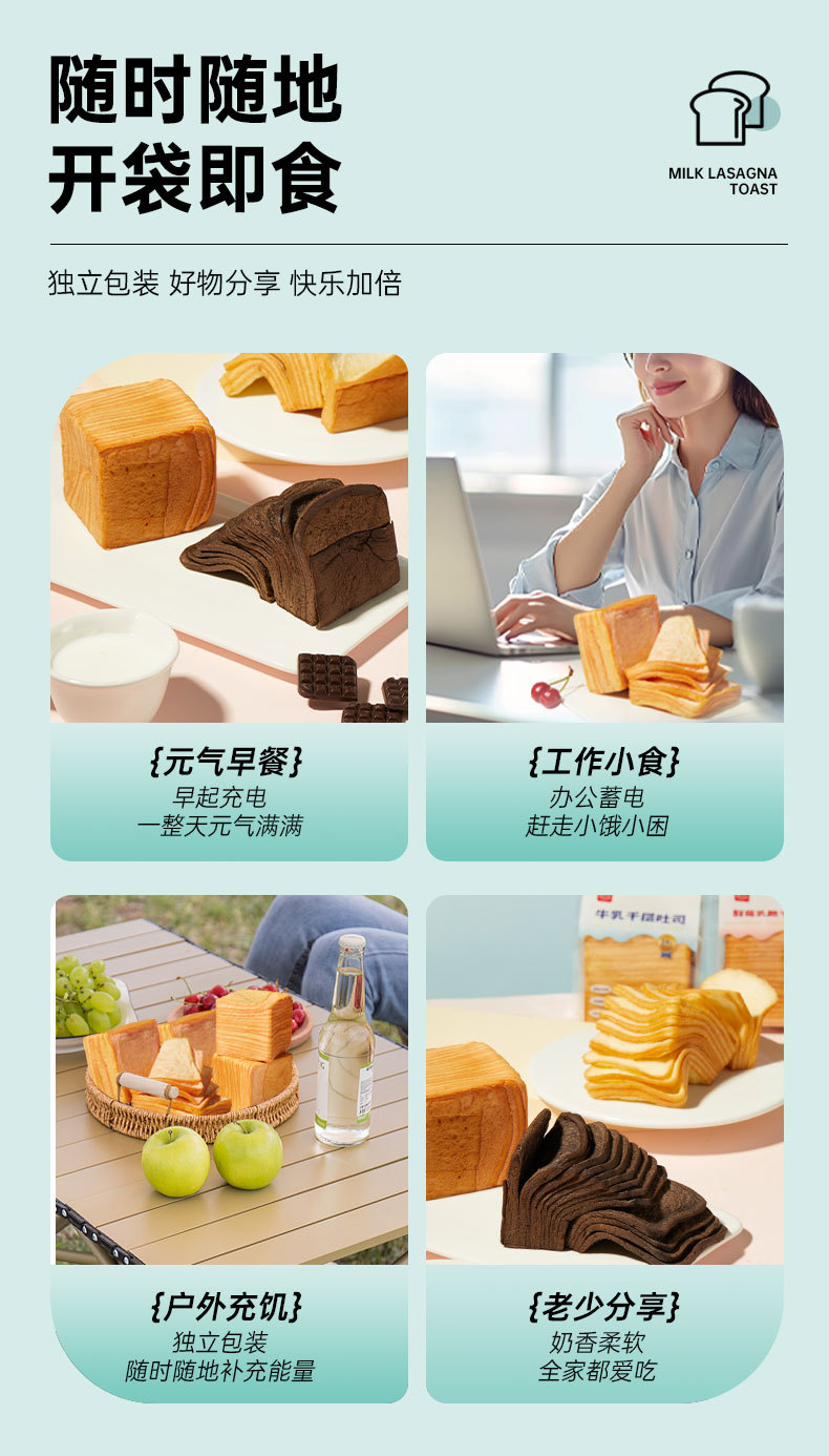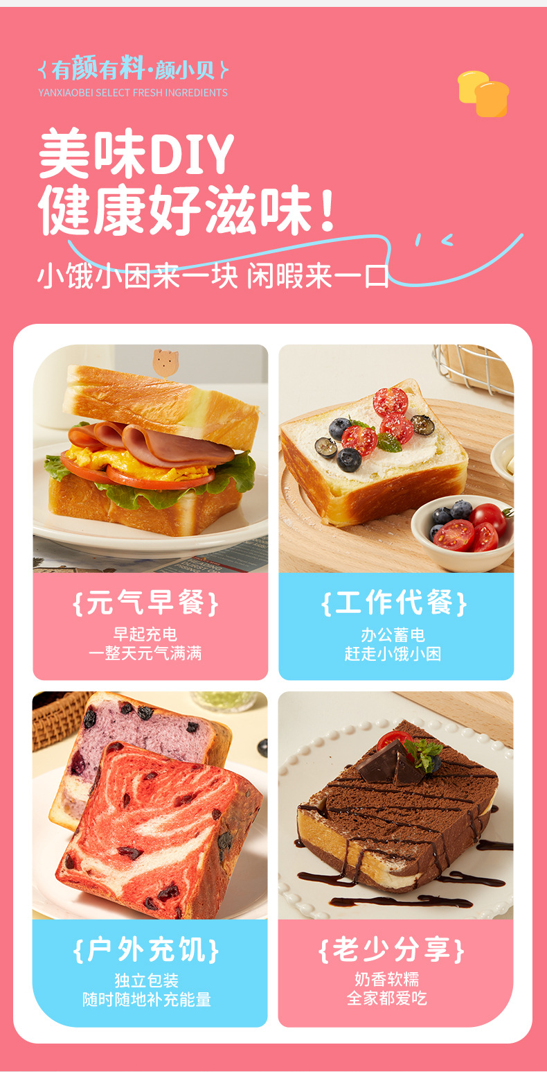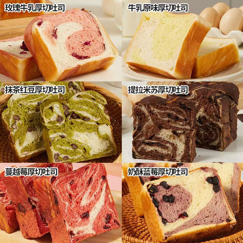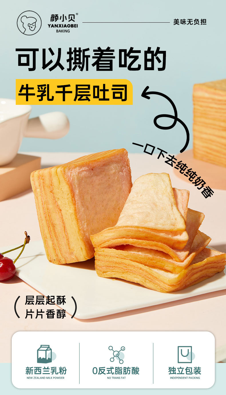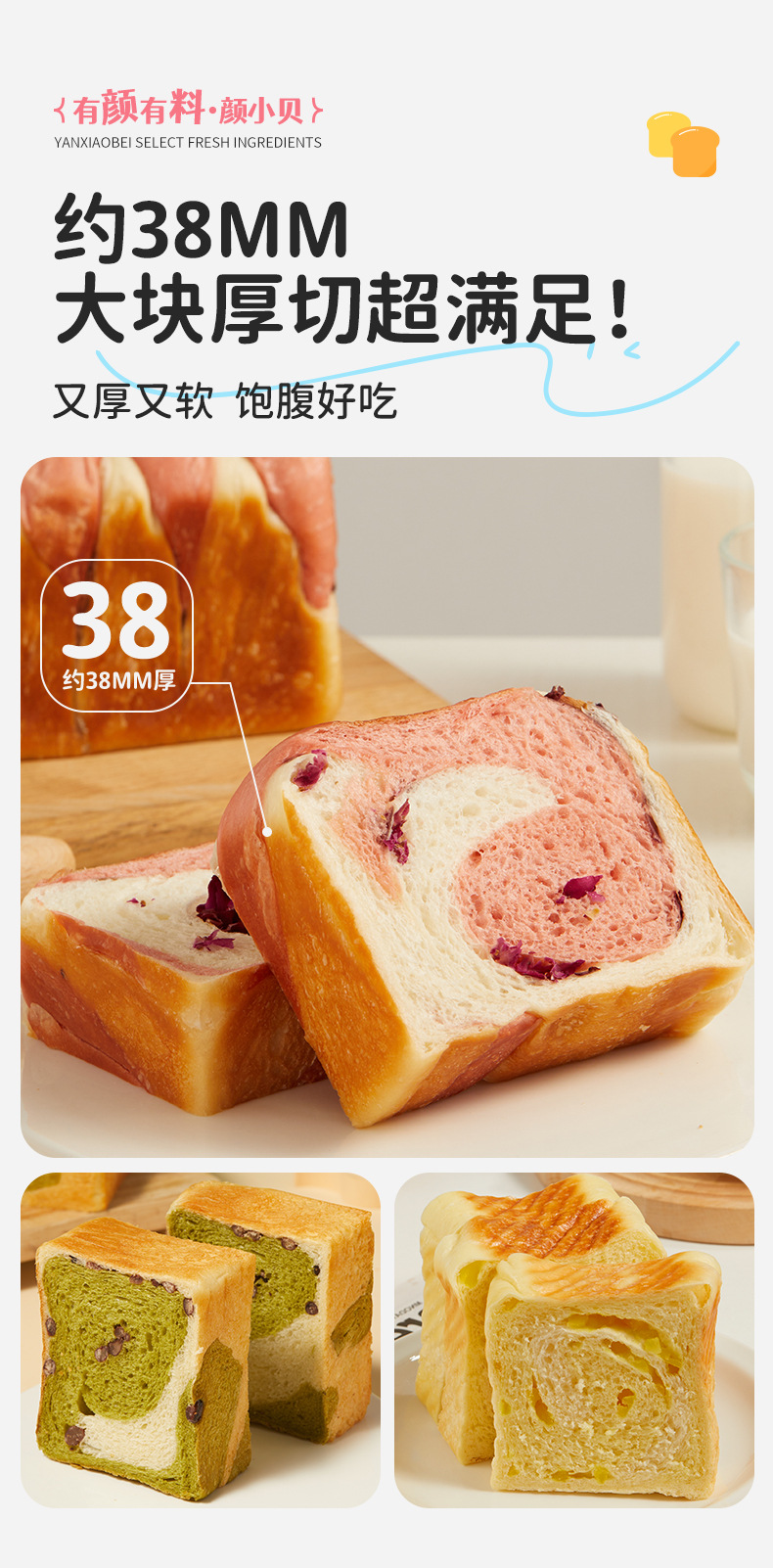 Yan Xiaobei 버터 두껍게 자른 토스트 빵 전체 상자 천 겹 토스트 영양가 있고 건강한 아침 식사 설탕 대체 아침 식사 페이스트리스토어 가기