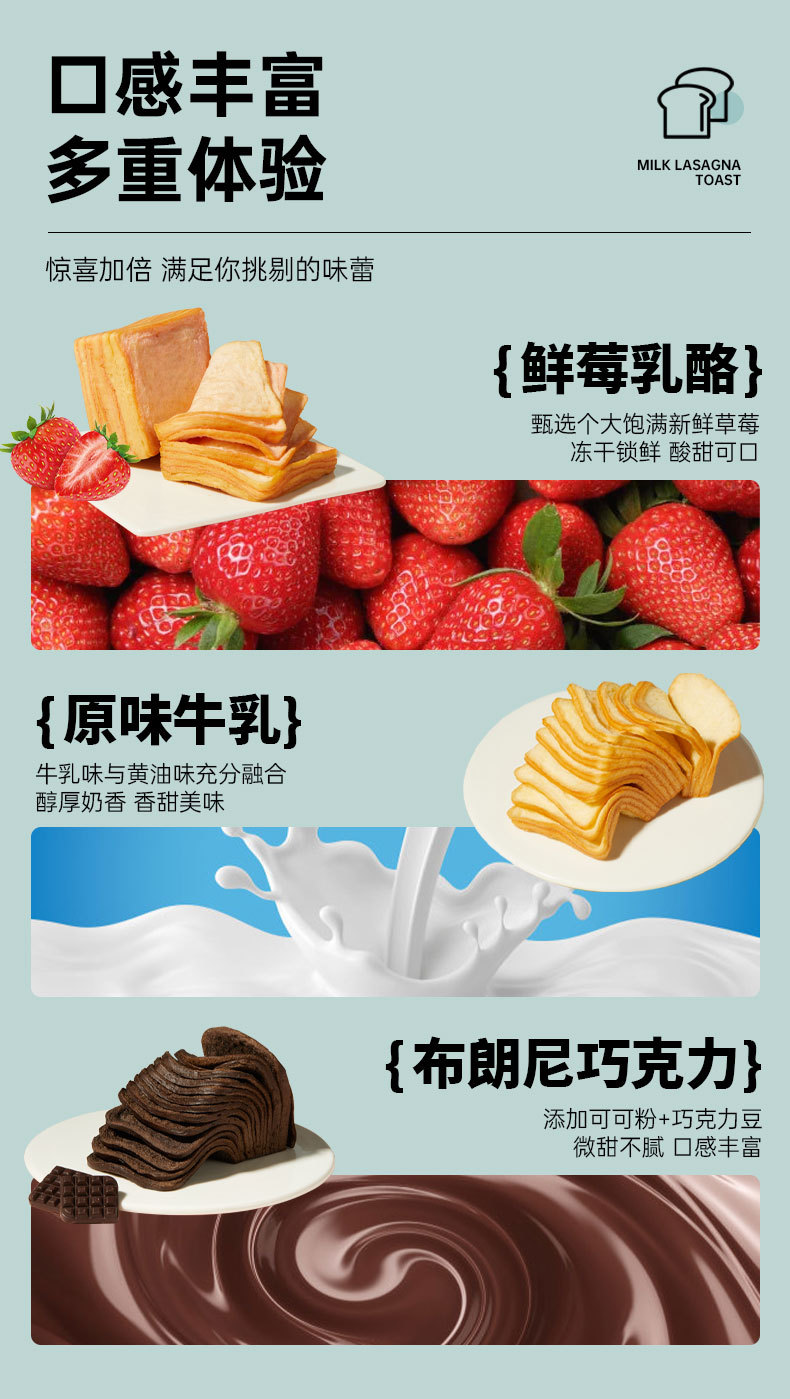 • 밀푀유 토스트 3팩 총 255g [코코아 브라우니 + 생우유 + 생베리치즈]