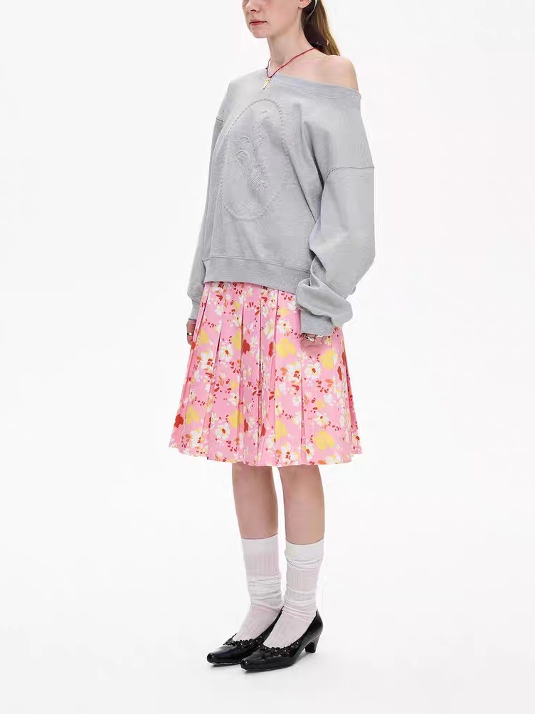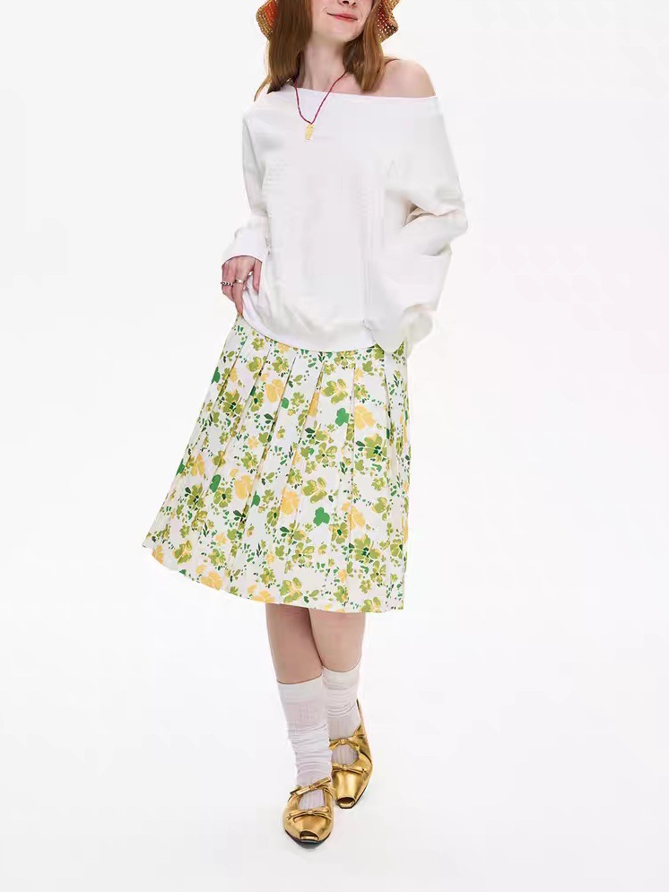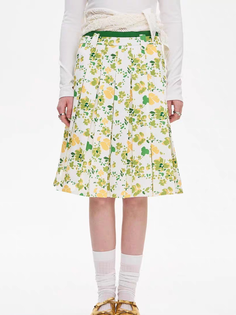 스윗 메시지 플로럴 플리츠 스커트, 히트 컬러의 더블 웨이스트 디자인