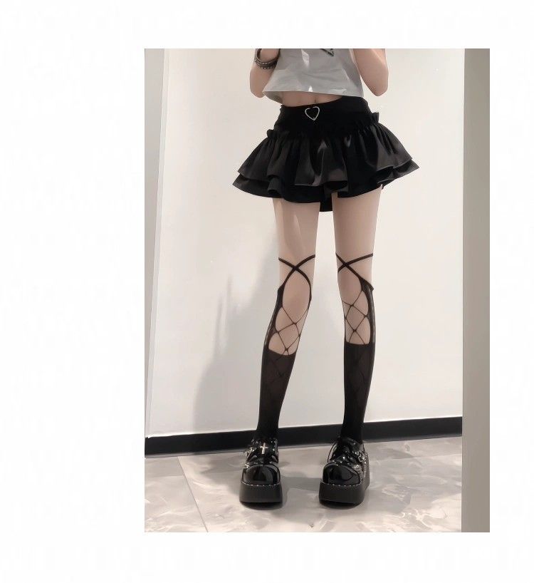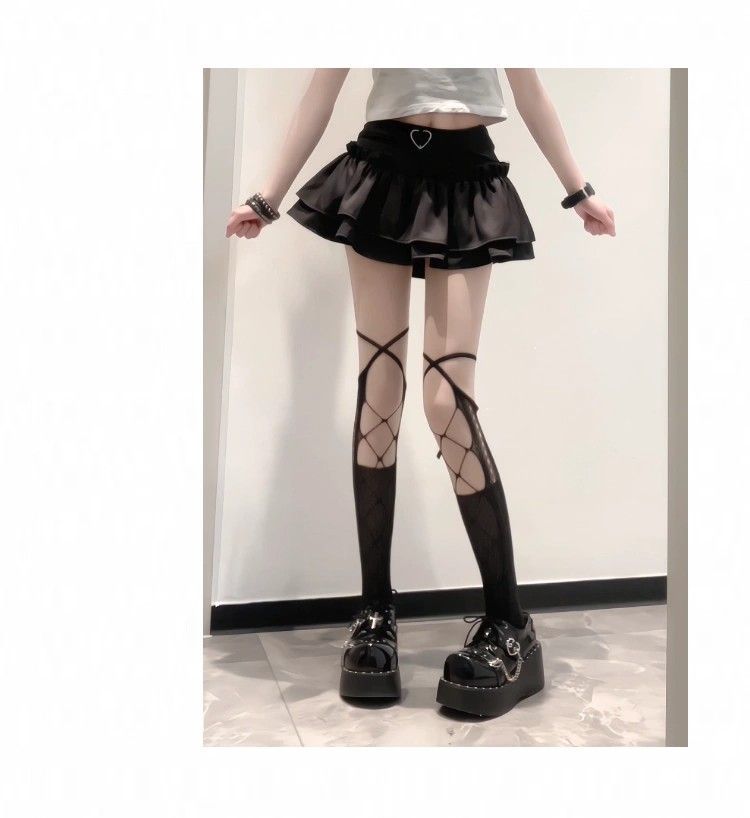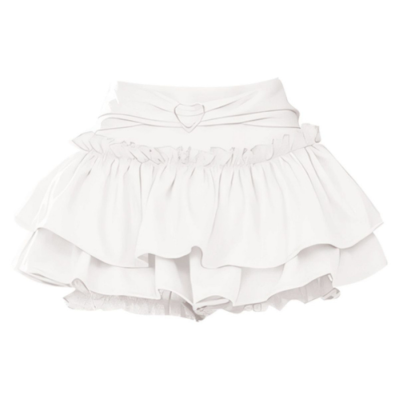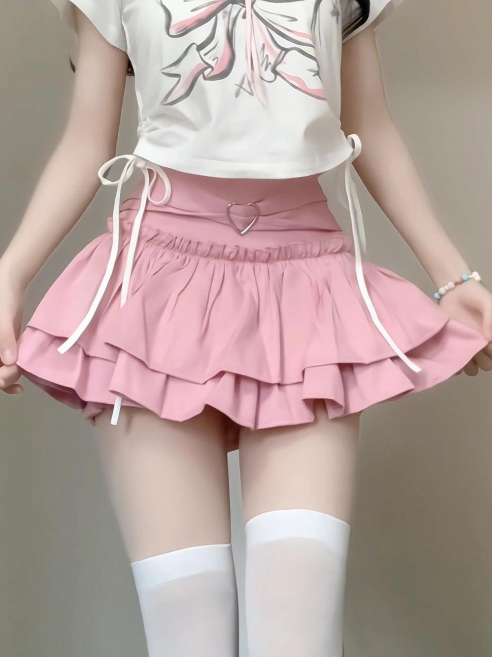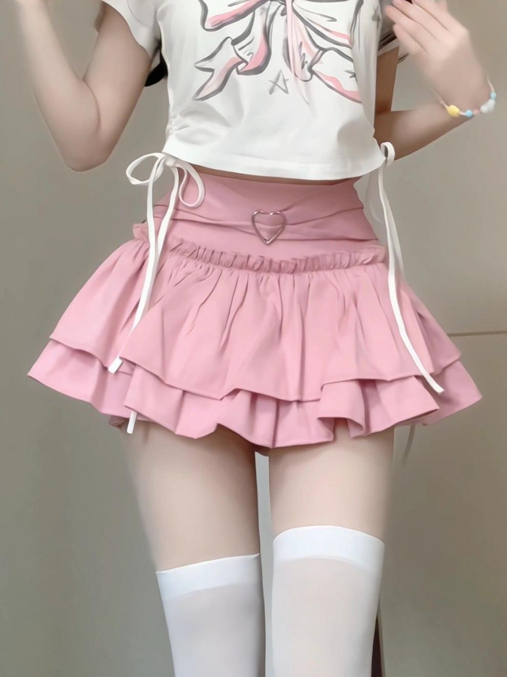 귀여운 푹신한 하트 복숭아 하이웨이스트 케이크 스커트, 미니스커트, 노출 방지 스커트