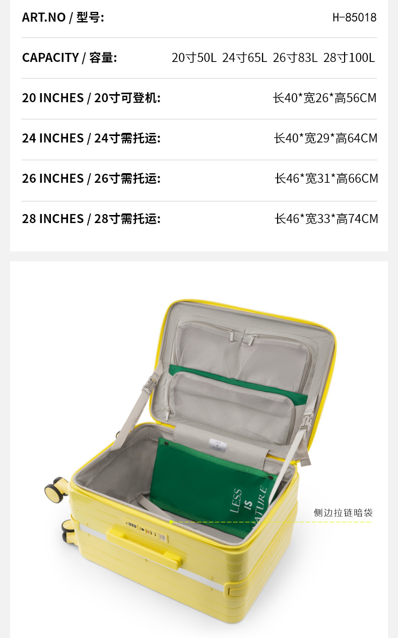 수출 일본 및 한국 새로운 대용량 사이드 오픈 깊은 창고 폭발 방지 지퍼 수하물 경량 강력하고 내구성 가방