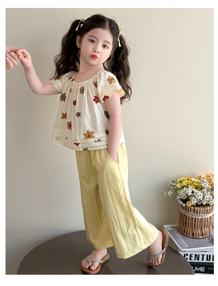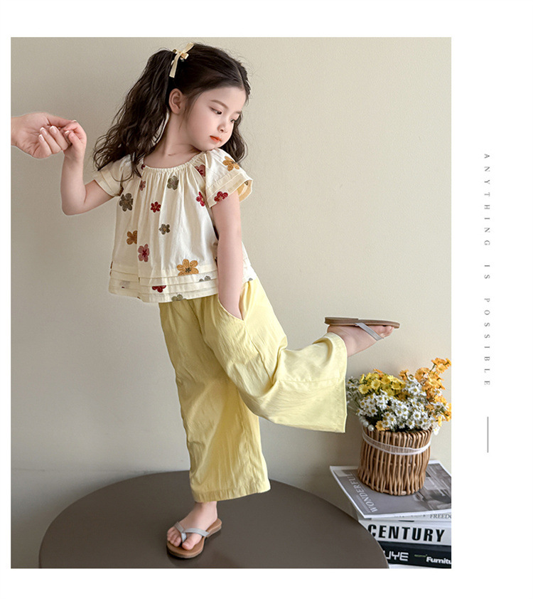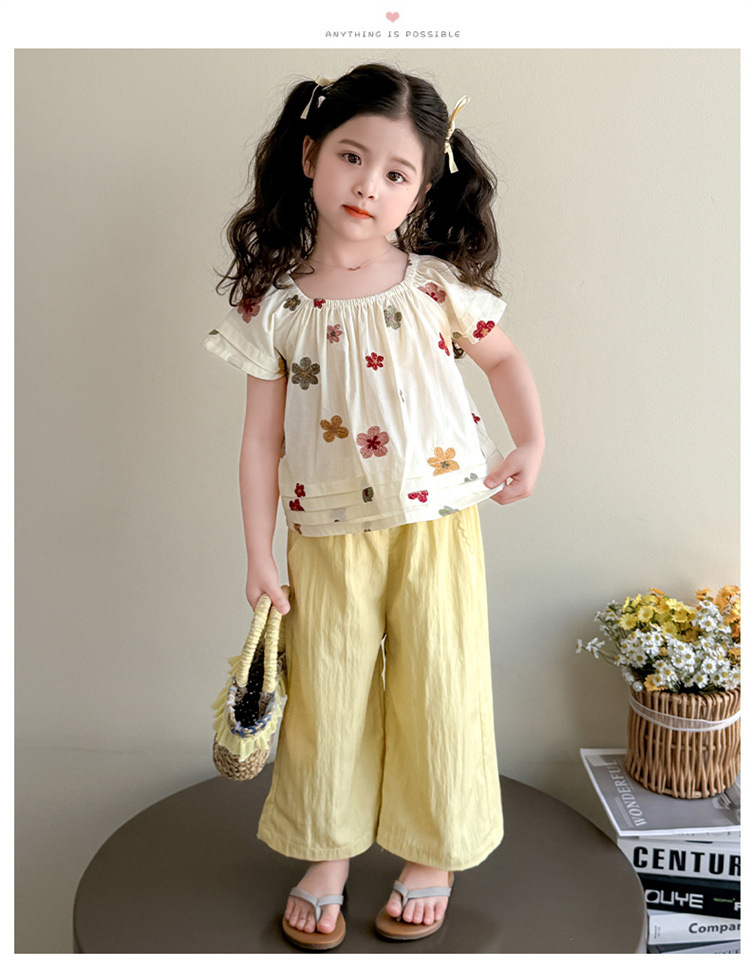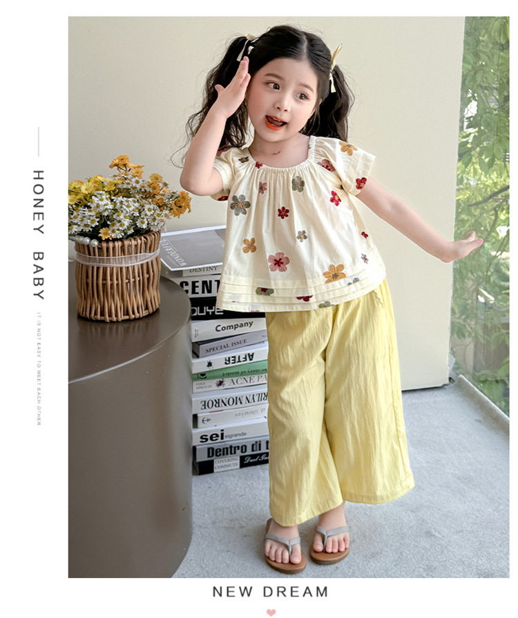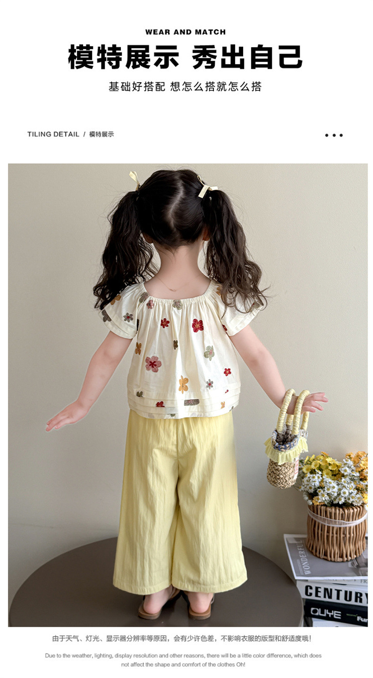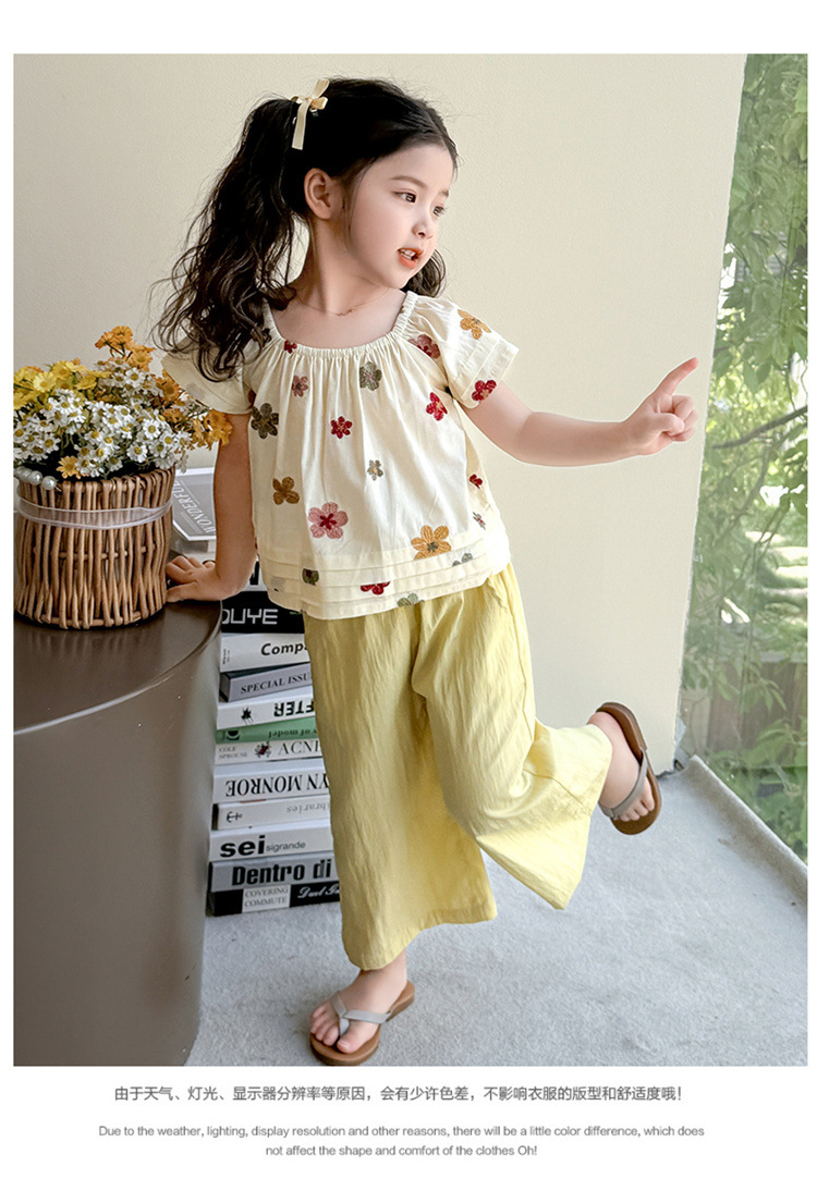 여자 꽃 넓은 다리 바지 세트 2025 여름 이 패션 소녀 세련된 두 조각 세트 어린이 여름 원피스스토어 가기