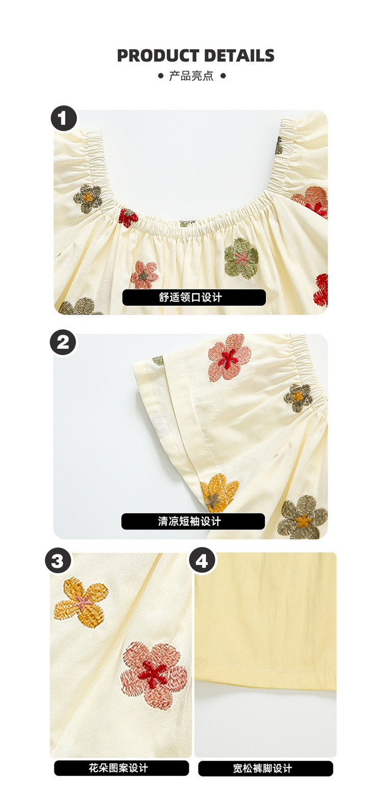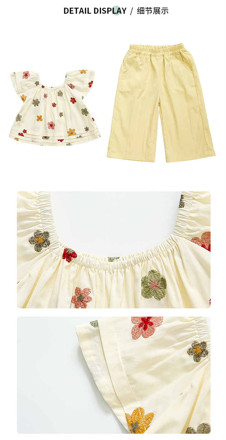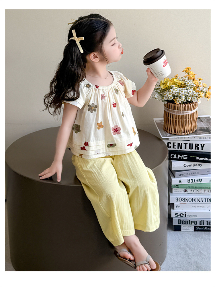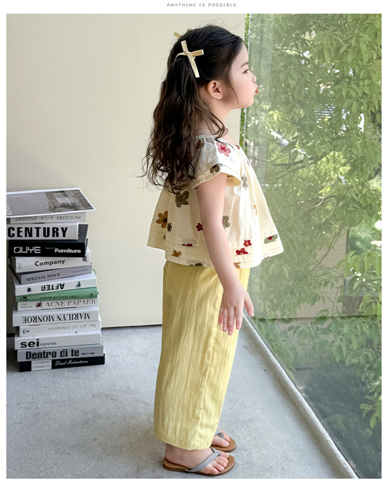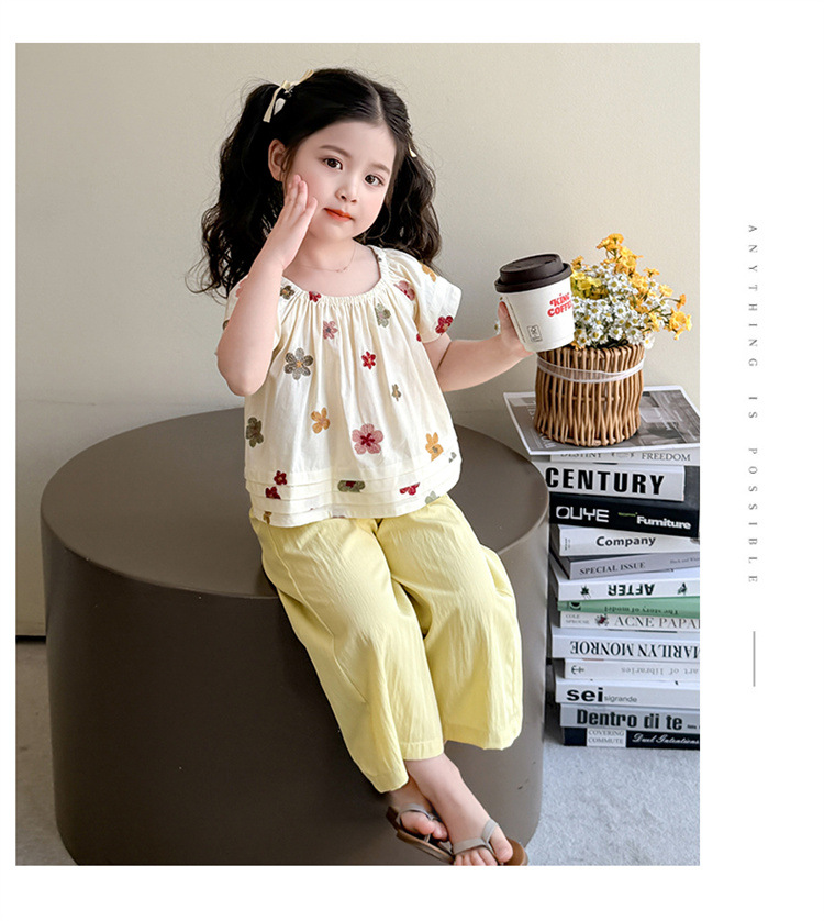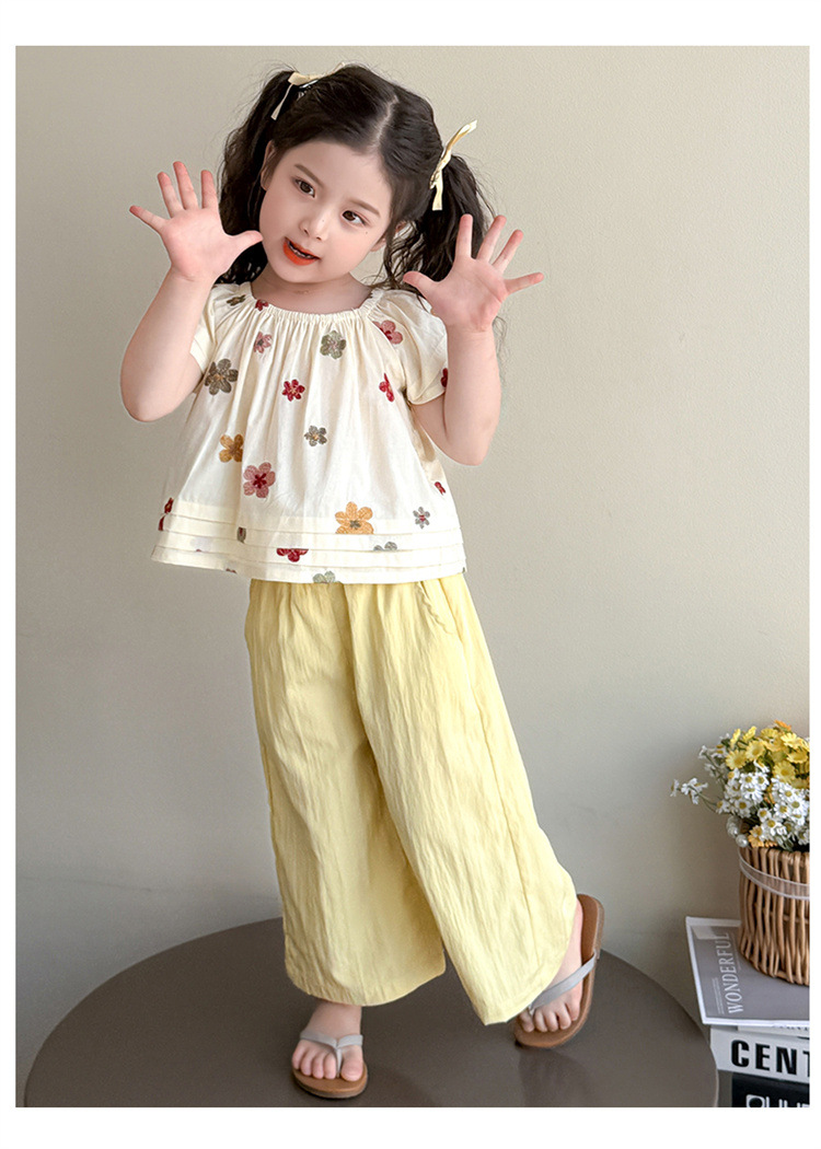 여자 꽃 넓은 다리 바지 세트 2025 여름 이 패션 소녀 세련된 두 조각 세트 어린이 여름 원피스스토어 가기