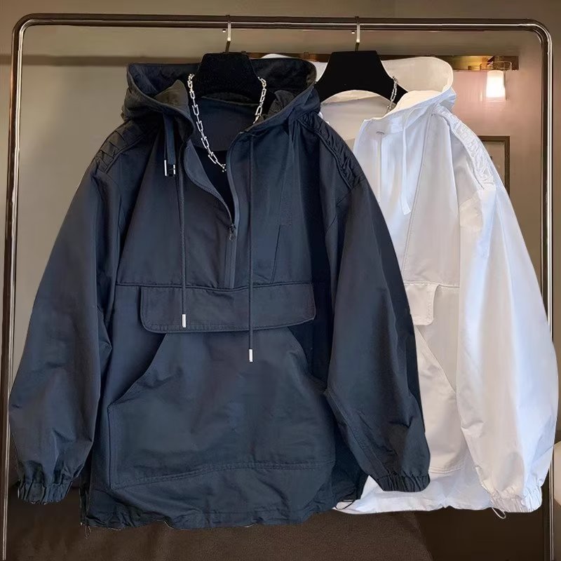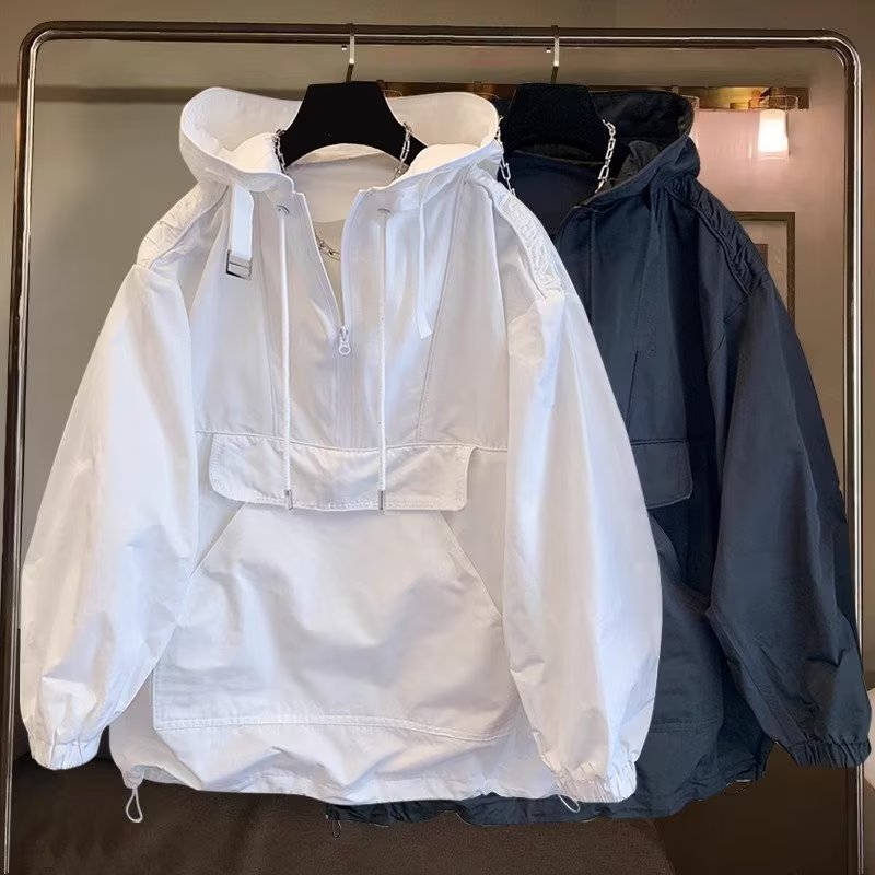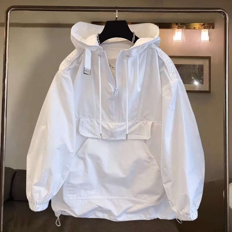 플러스 사이즈 150kg 블랙 스플 라이스 빅 포켓 후드 티셔츠 여성 여름 틈새 루즈 워크웨어 자켓