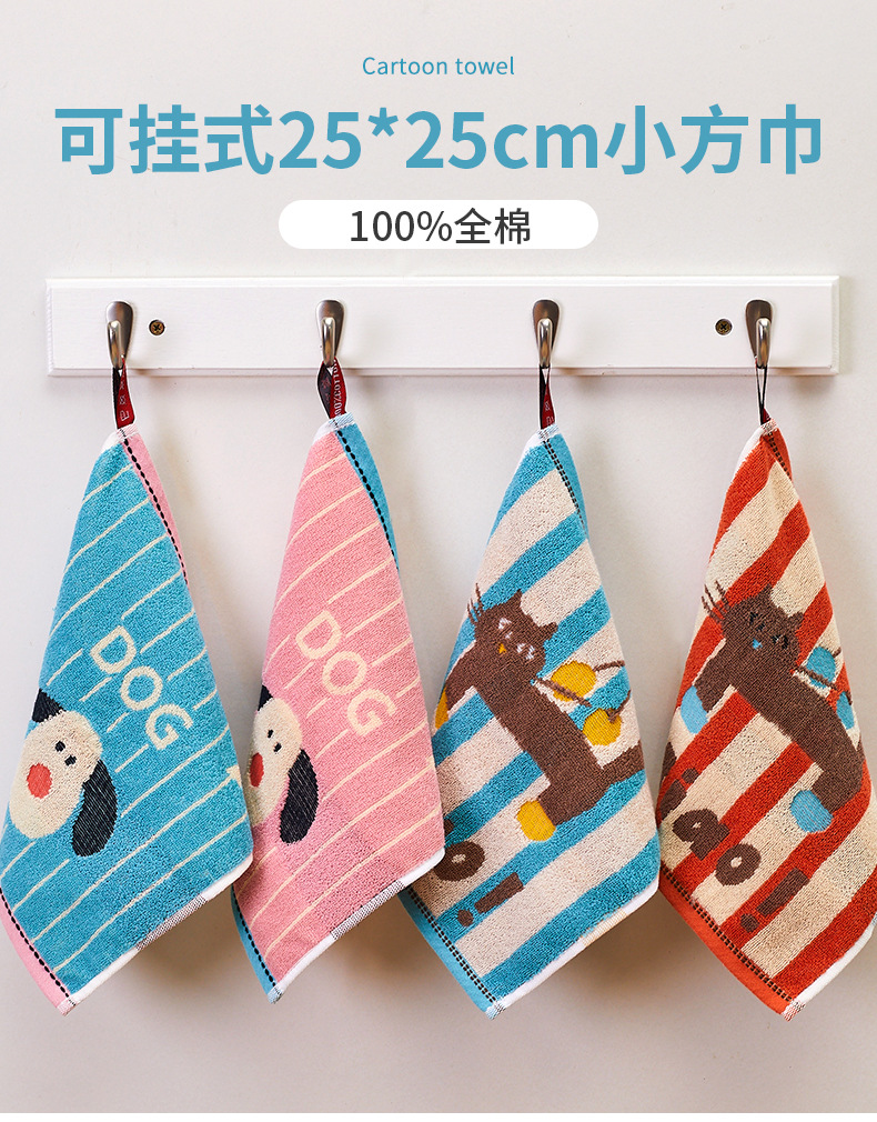 유치원용 순면 작은 사각 수건, 걸이형 세안 및 손 닦기 수건, 어린이용 순면 유아 침 수건