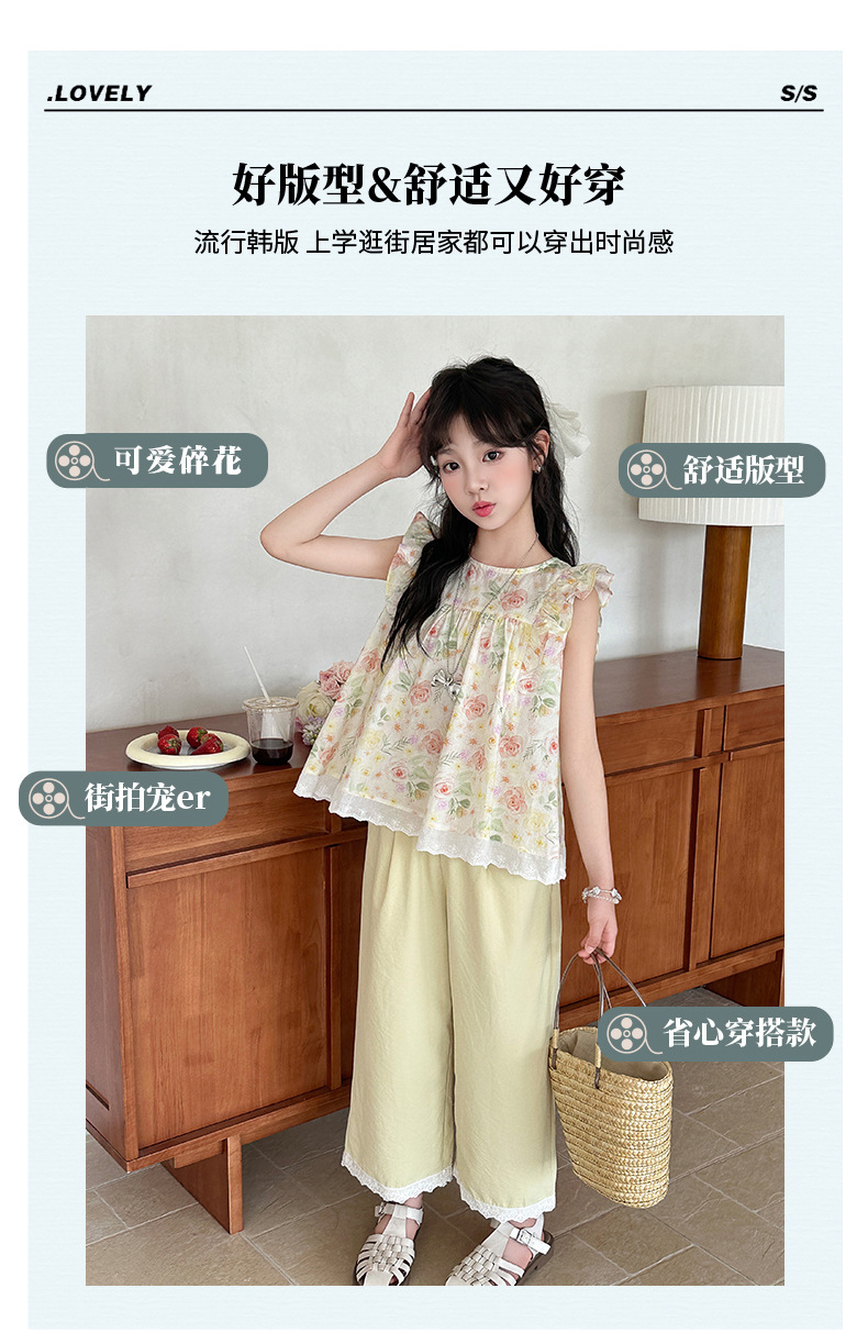 여아 여름 옷 2025 새로운 스타일 한국식 여름 중대형 아동 캐주얼 상의와 바지 여아 투피스 세트스토어 가기