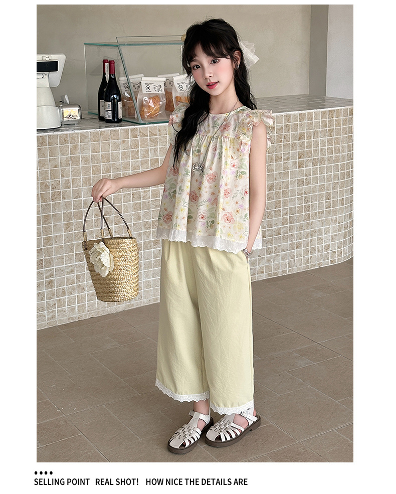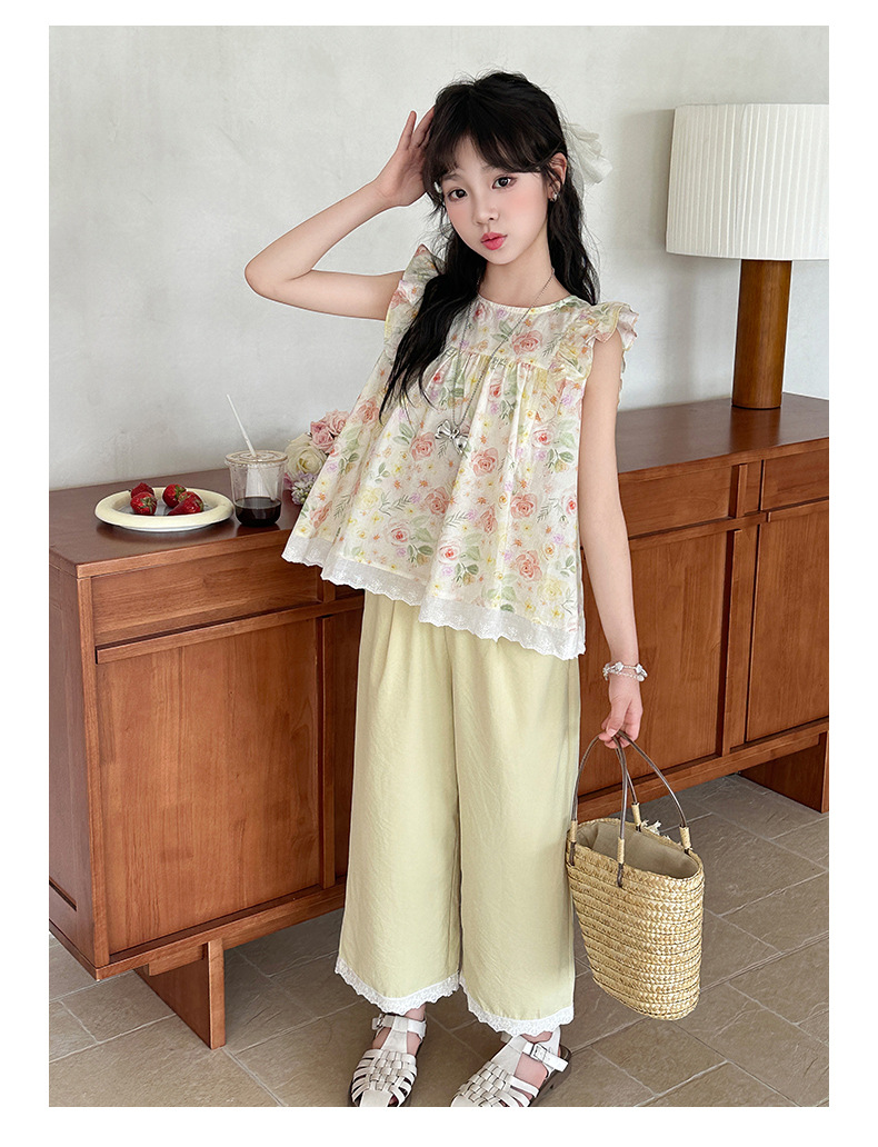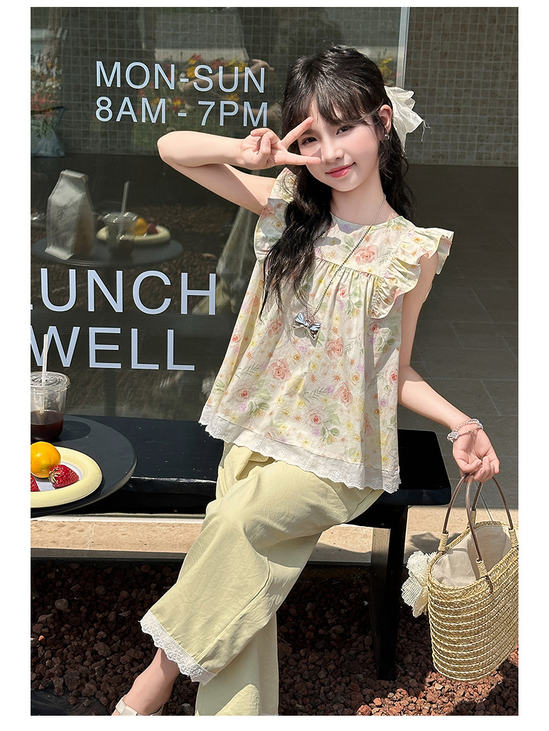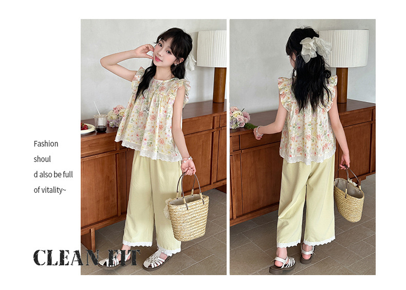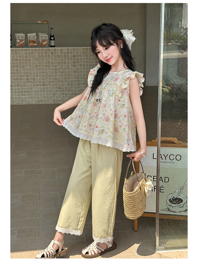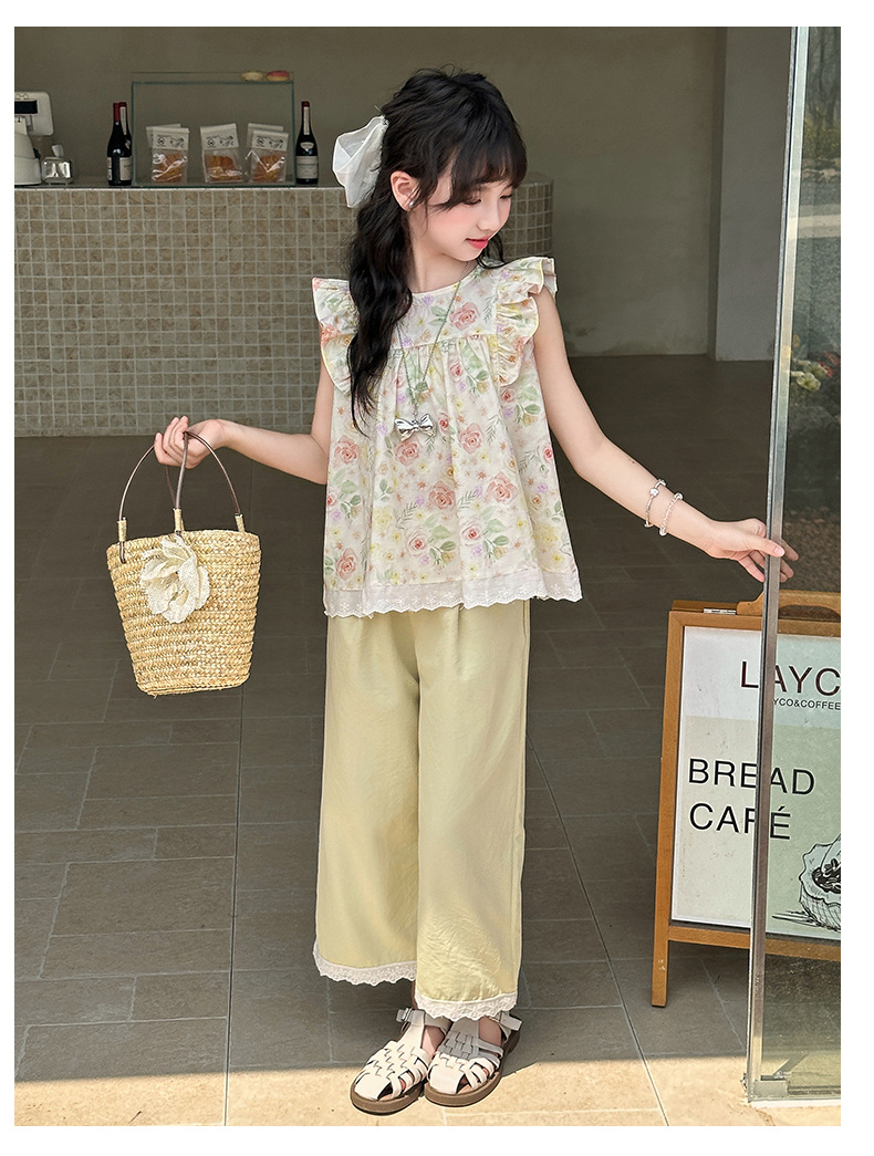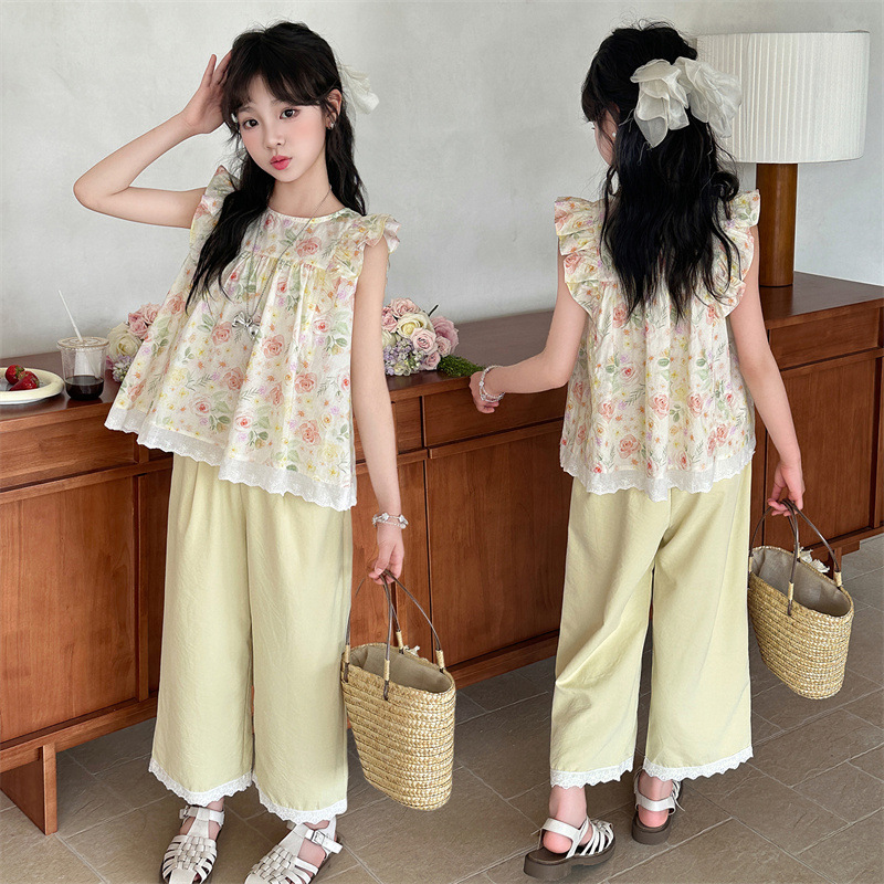 여아 여름 옷 2025 새로운 스타일 한국식 여름 중대형 아동 캐주얼 상의와 바지 여아 투피스 세트