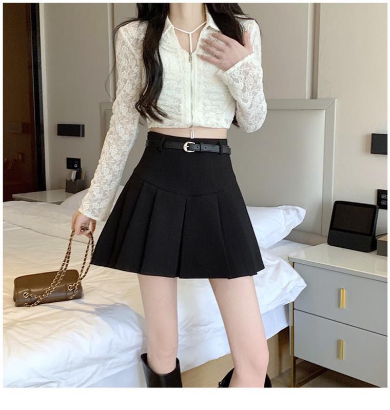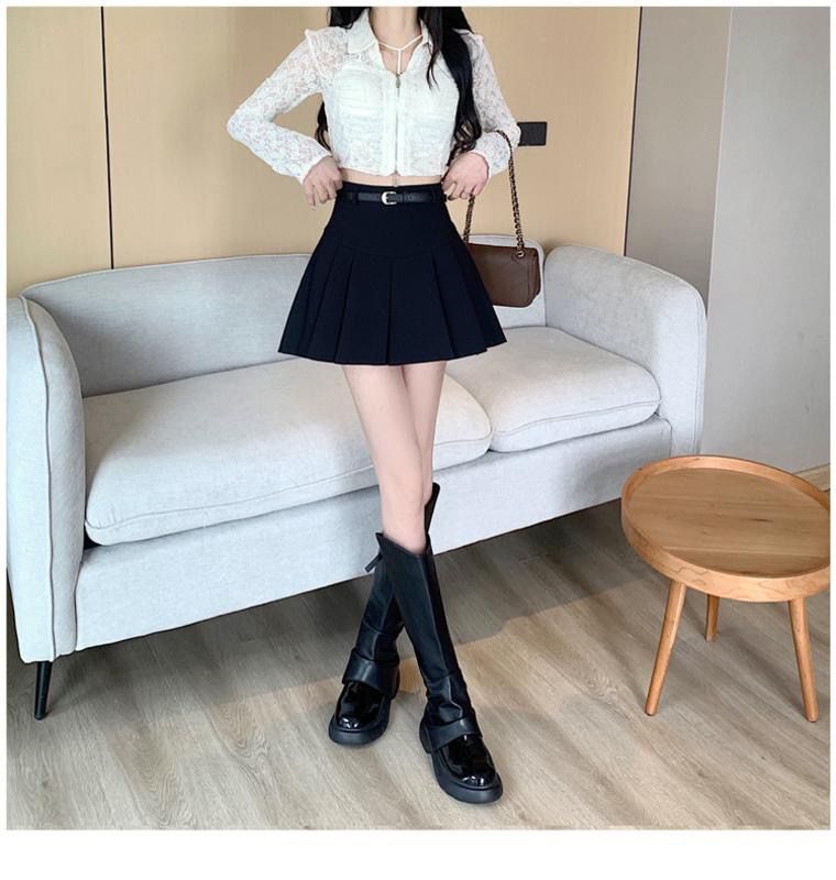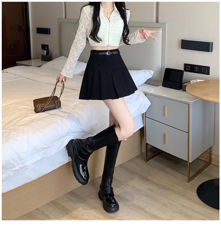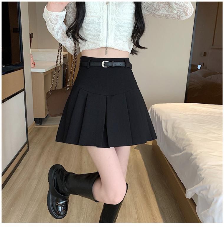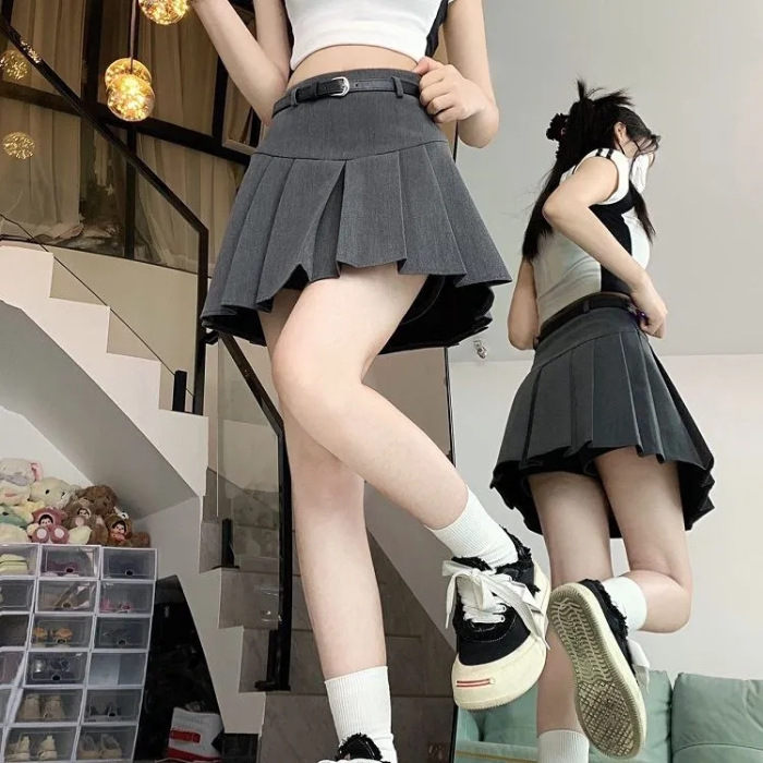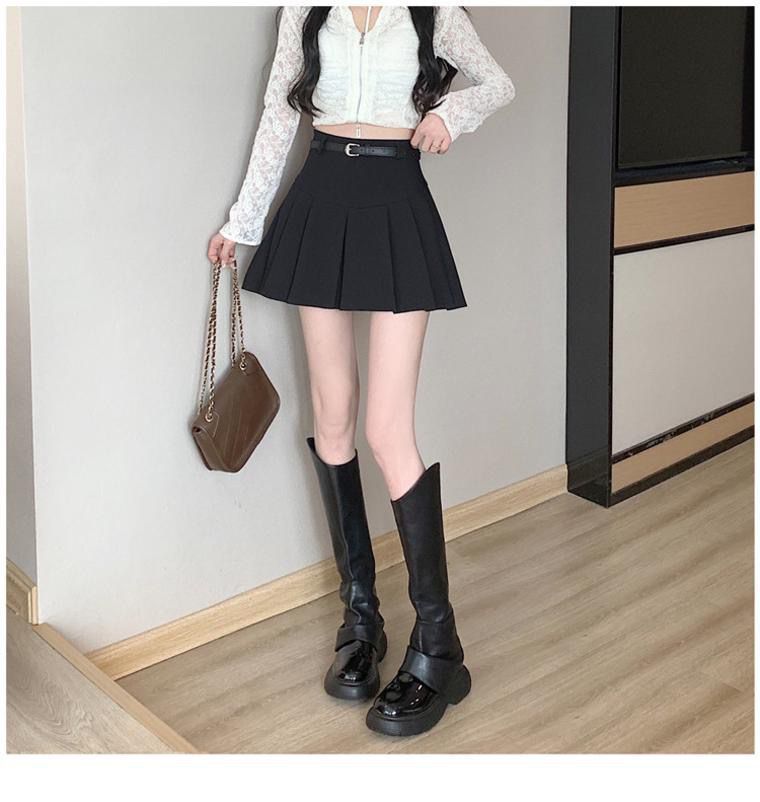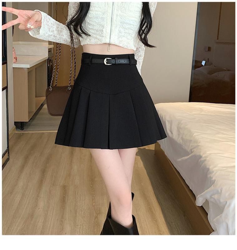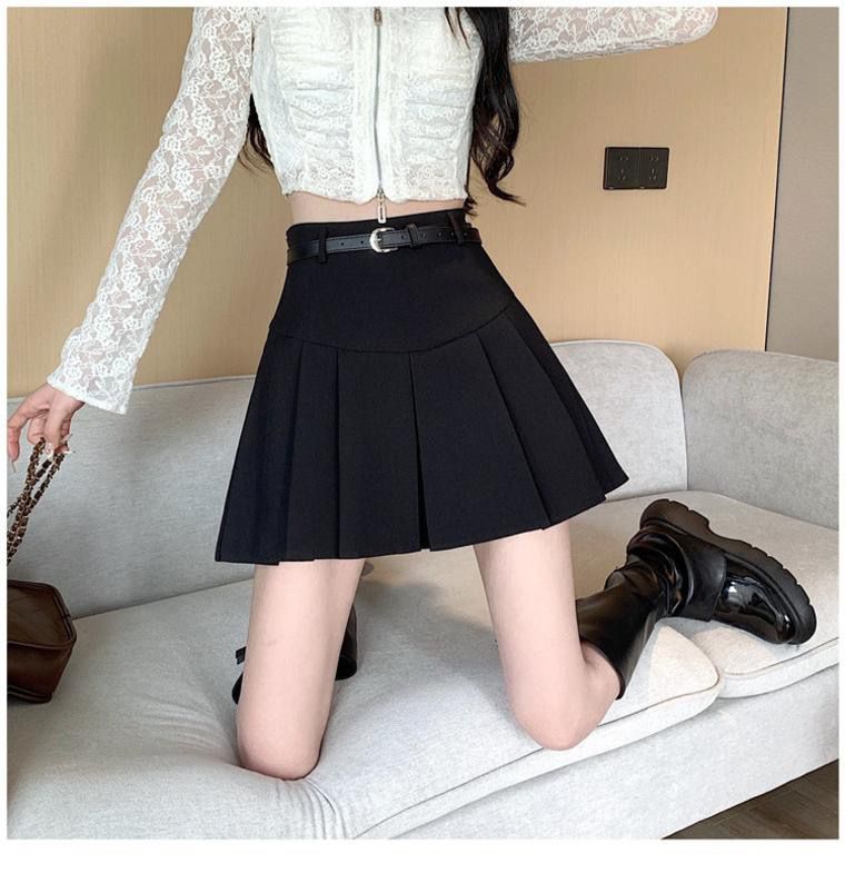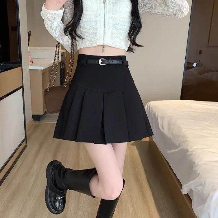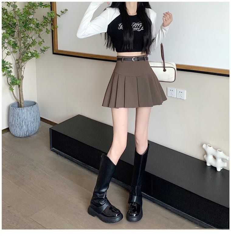 여성을위한 하이 웨이스트 플리츠 스커트 2025 봄 여름 새로운 복고풍 기질 슬림 스커트 다목적 핫 소녀 a 라인 스커트