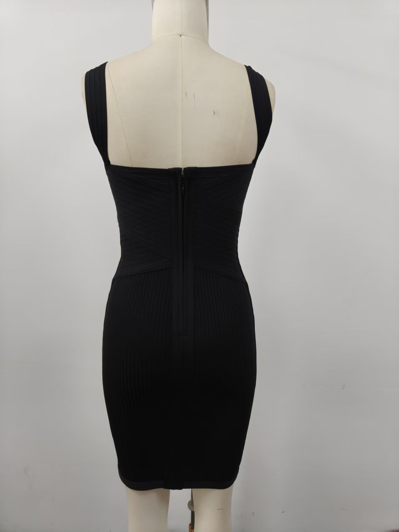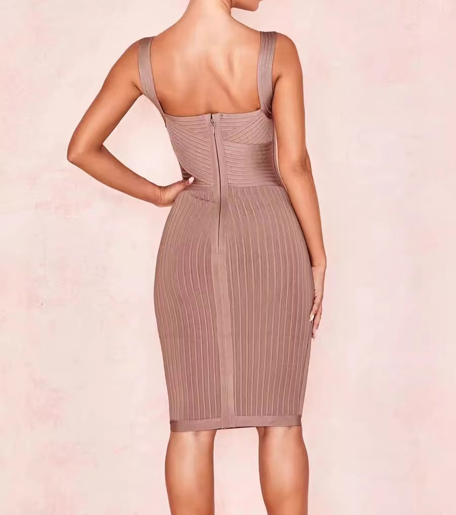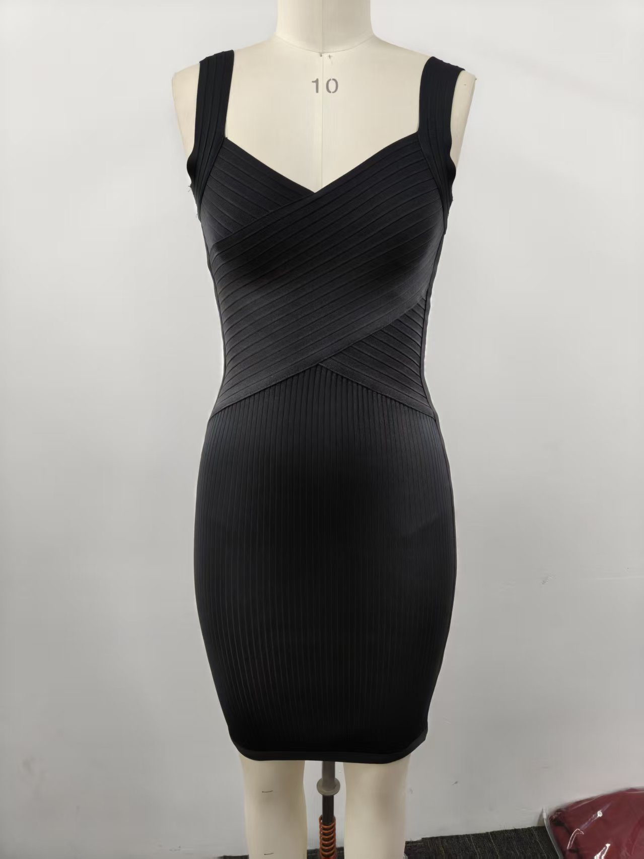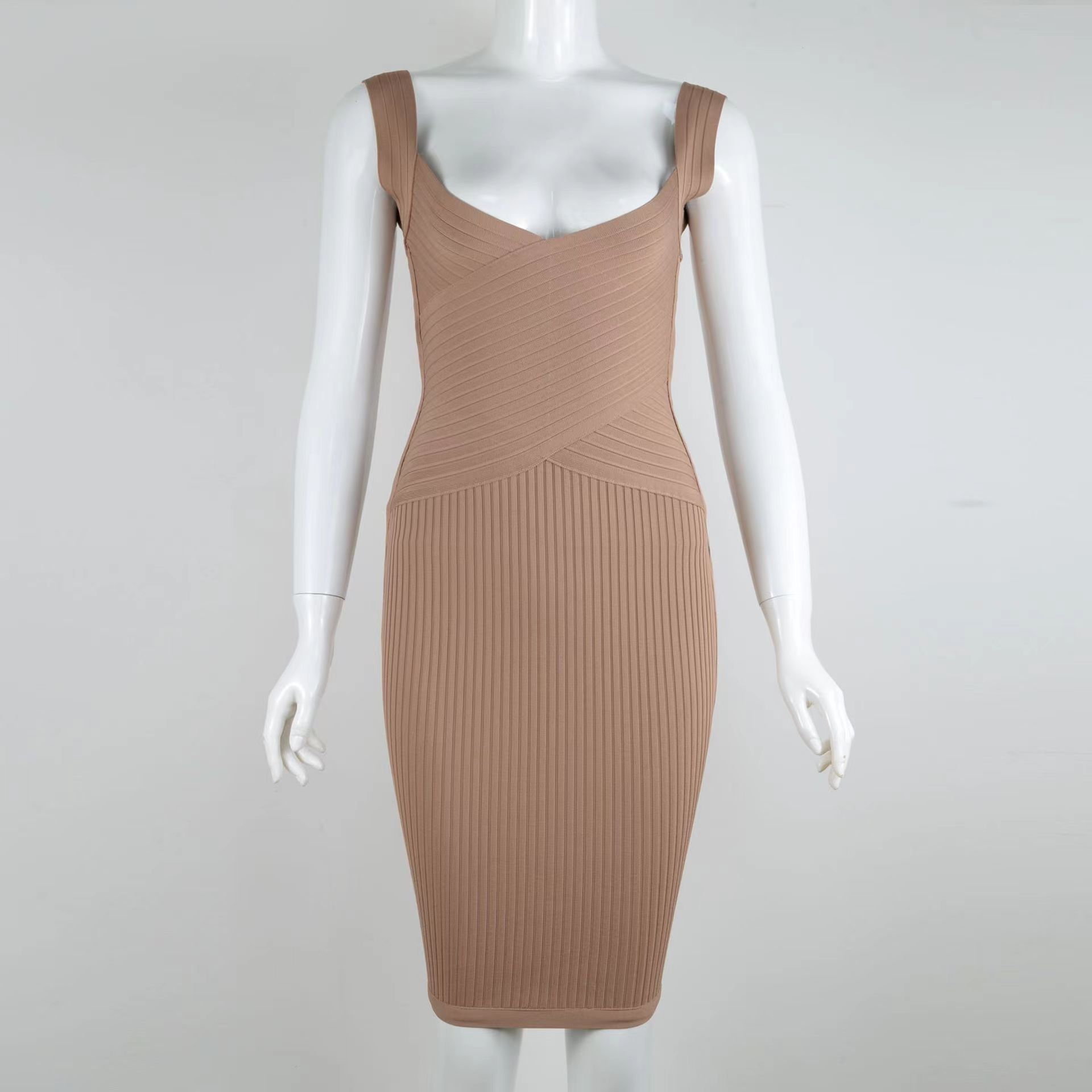 대외 무역 유럽과 미국 스타일의 민소매 붕대 바닥 브이넥 드레스 여성 슬림핏 중간 길이 힙 스커트스토어 가기