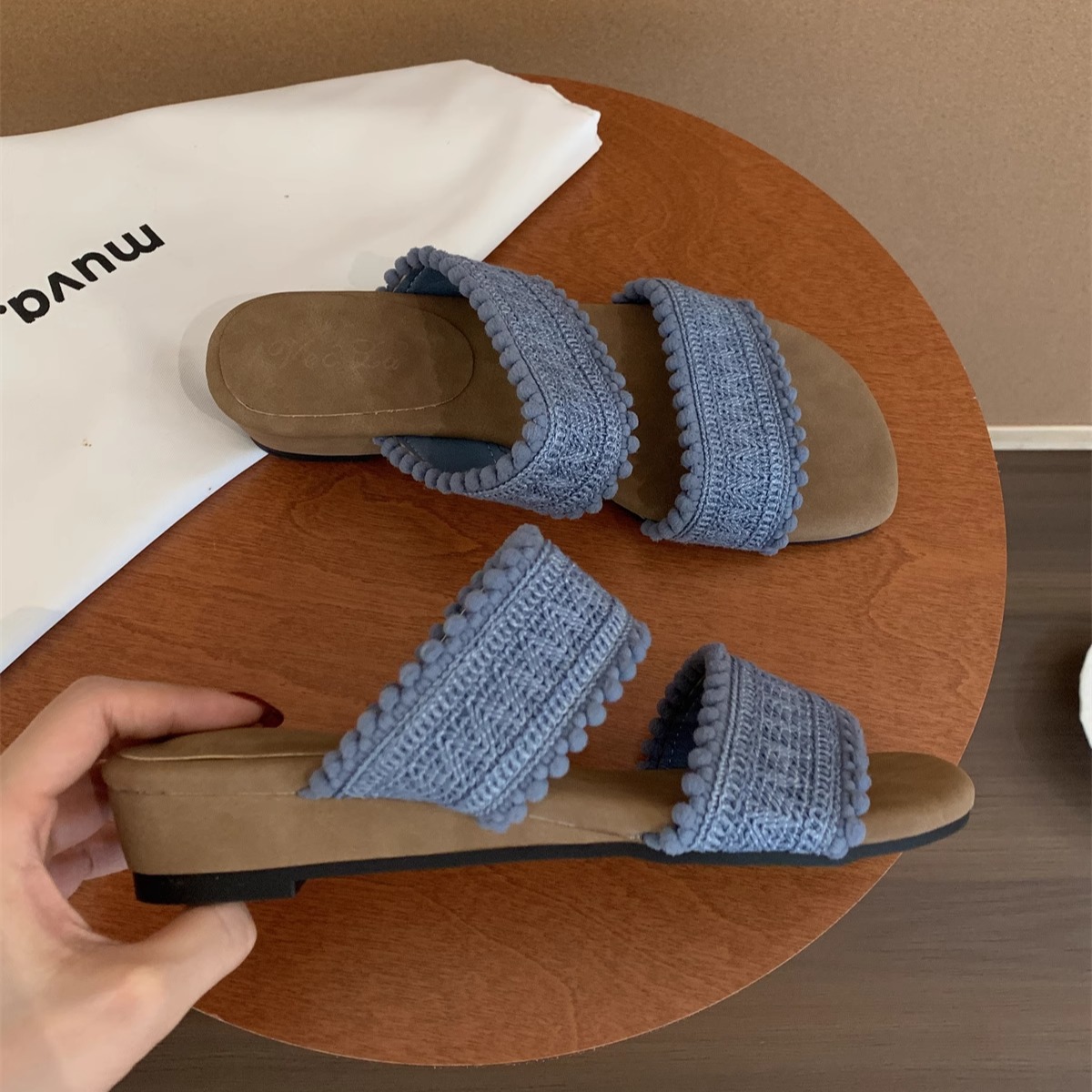 웨지 힐 하이힐 두꺼운 슬리퍼 여성용 여름 아우터 2025 새로운 스타일 보헤미안 슬라이드 샌들 스커트스토어 가기