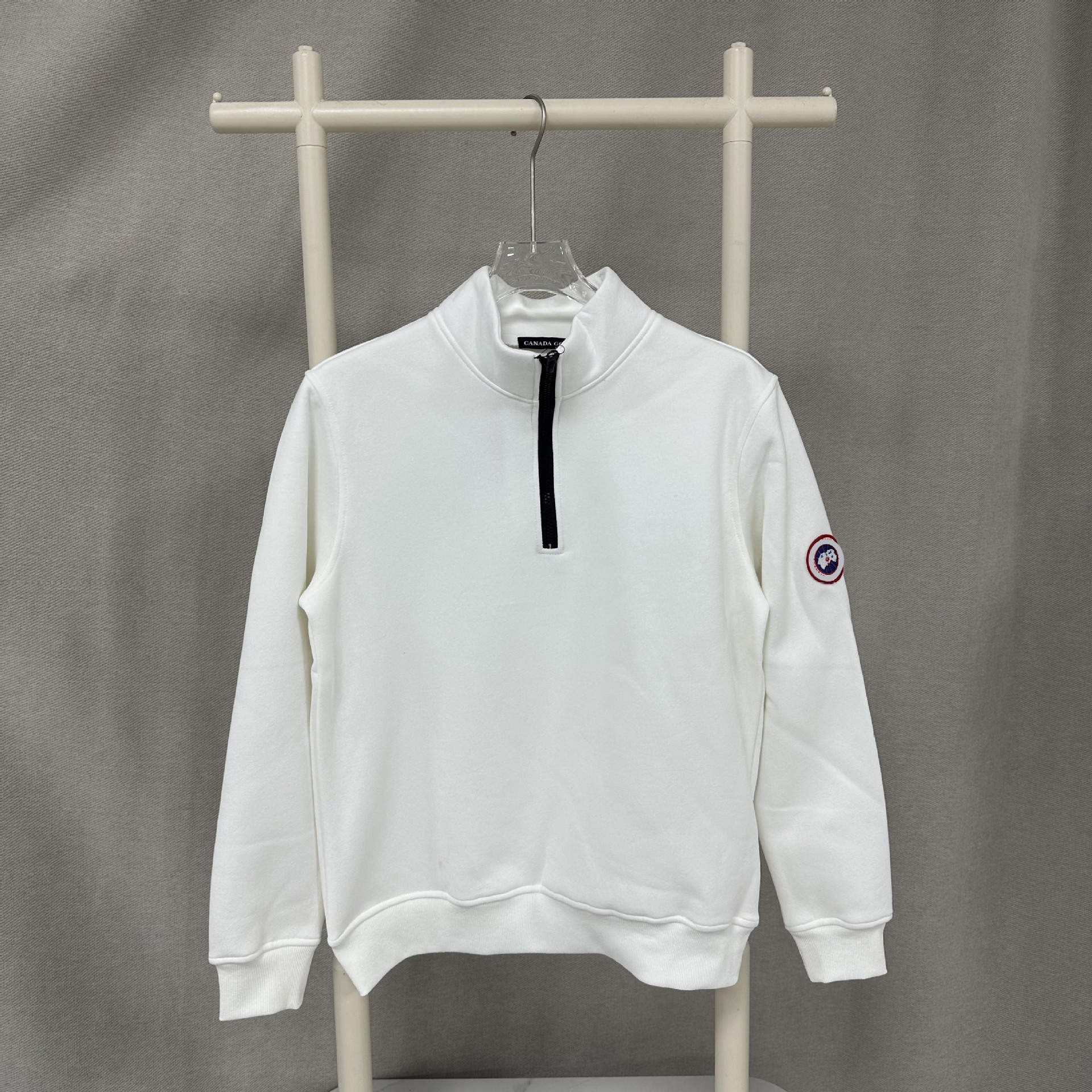 거위 국경 공급 캐나다 반 지퍼 단색 배지 기모 스웨터 아마존 풀오버 긴 소매 남성 및 여성스토어 가기